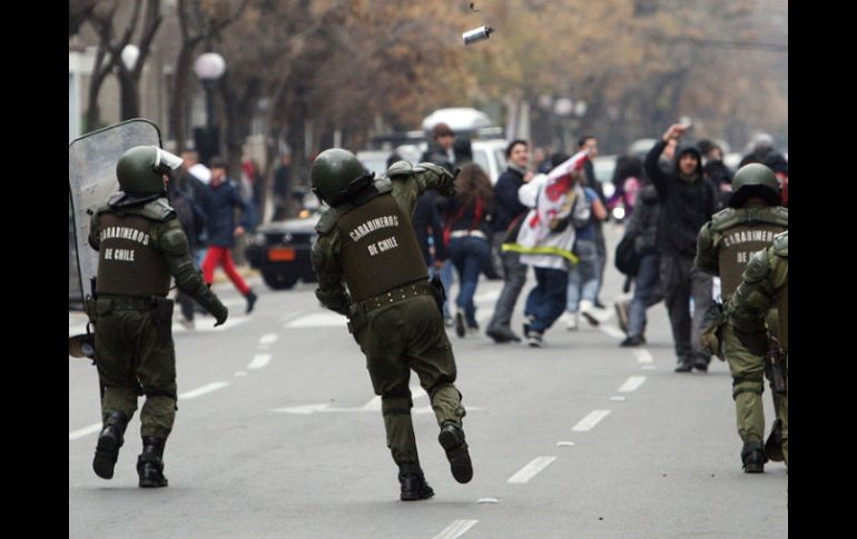 Internacional | La agresión ocurrió en medio de protestas estudiantiles Dos policías heridos por bomba lanzada desde un colegio en Chile Los oficiales se encuentran 'en observación'; presentan quemaduras en varias partes del cuerpo Por: AFP 4 de noviembre de 2011 - 15:36 hs Según testigos, un encapuchado lanzó la bomba incendiaria al vehículo en el que circulaban los policías. ARCHIVO / SANTIAGO, CHILE (04/NOV/2011).- Dos policías chilenos que patrullaban una comuna del centro de Santiago el jueves en la noche resultaron heridos luego que una bomba incendiaria lanzada desde un colegio cayera en el vehículo en el que circulaban los uniformados, hecho por el cual el gobierno anunció que presentará una querella. El incidente ocurrió cuando los policías se dirigieron "donde estudiantes habían levantado una barricada cerca del liceo Guillermo Feliú Cruz", la noche del jueves, informó el viernes el jefe policial Agustín Alarcón, a la privada Radio Cooperativa. Desde el colegio "un encapuchado lanzó una bomba incendiaria al vehículo en el que circulaban los policías, quienes sufrieron heridas por quemaduras", agregó Alarcón. Uno de los policías presentó quemaduras en el cuello y extremidades, mientras que su compañero, al intentar apagar las llamas de su cuerpo, se quemó las manos. Ambos se encuentran "en observación" en el hospital de Carabineros, señaló la fuente. En tanto, el gobierno chileno deploró el ataque contra los policías y anunció una querella contra quienes resulten responsables. "Cuando el Ministerio del Interior se querella se produce una acción judicial más rápida y más concreta. Tenemos que aislar a estos vándalos, a estos asesinos", declaró el subsecretario del Interior, Rodrigo Ubilla. El hecho ocurrió en medio de protestas estudiantiles que desde hace seis meses exigen una educación gratuita y de calidad, y que en su mayoría han acabado con fuertes enfrentamientos con la policía. El liceo del incidente fue tomado durante varias semanas por estudiantes, pero desde hace un mes la situación se había normalizado en ese establecimiento. Temas América Latina Chile Manifestaciones en el mundo Agresiones a policías Recibe las últimas noticias en tu e-mail Todo lo que necesitas saber para comenzar tu día Registrarse implica aceptar los Términos y Condiciones
