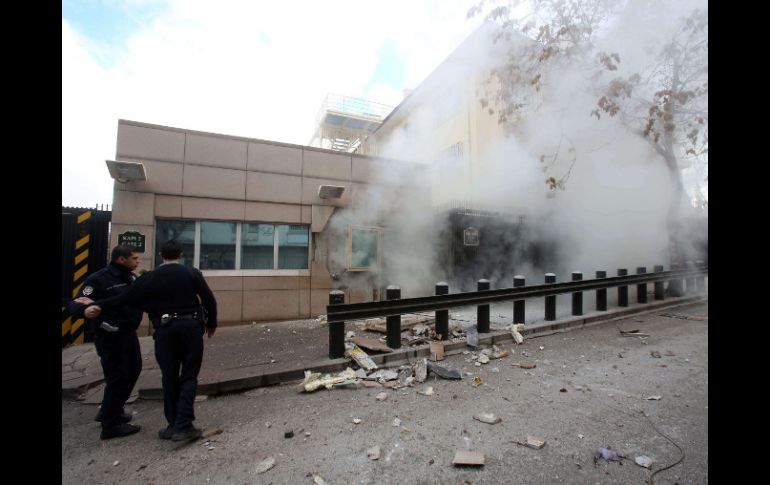 Internacional | Ocurre en un punto de inspección, en una de las entrada del inmueble EU confirma atentado contra su embajada en Turquía La vocera del Departamento de Estado dice que trabajan con las autoridades locales para comenzar una investigación Por: NTX 1 de febrero de 2013 - 07:42 hs WASHINGTON, ESTADOS UNIDOS (01/FEB/2013).- Estados Unidos confirmó hoy el atentado contra su embajada en Ankara, capital de Turquía al indicar que ocurrió en un punto de inspección, en una de las entrada del inmueble, a las 13:13 horas locales (11:13 GMT). "Estamos trabajando de cerca con la policía nacional turca para hacer una evaluación completa del daño y las pérdidas, y comenzar una investigación", señaló en un comunicado la vocera del Departamento de Estado, Victoria Nuland. Indicó que compartirá más información cuando esté disponible. Al menos dos muertos, y varios heridos, además del atacante suicida dejó la potente explosión en la entrada de la embajada. Turquía se mantendrá unida en contra de los ataques terroristas, sostuvo el primer ministro turco, Recep Tayyip Erdogan, al confirmar que fue un atentado la explosión registrada en la embajada. En su mensaje, afirmó que Turquía "se va a mantener fuerte y superará cualquier amenaza terrorista". Erdogan, en su discurso pronunciado en Estambul, señaló que el atacante suicida murió en el ataque y el número de muertes registradas hasta este momento era de dos personas. Temas Medio Oriente Turquía Estados Unidos Atentados Recibe las últimas noticias en tu e-mail Todo lo que necesitas saber para comenzar tu día Registrarse implica aceptar los Términos y Condiciones