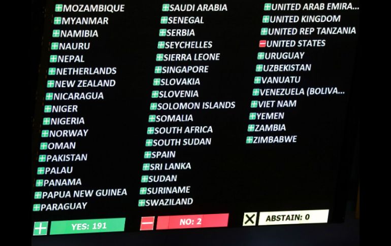 Internacional | Votan por vigésima cuarta ocasión contra la resolución que llama a terminar con bloqueo EU resiste a presión en ONU para terminar con el embargo a Cuba Votan por vigésima cuarta ocasión contra la resolución que llama a terminar con bloqueo contra La Habana Por: NTX 27 de octubre de 2015 - 12:22 hs NACIONES UNIDAS (27/OCT/2015).- Estados Unidos resistió una vez más el abrumador consenso de la comunidad internacional, expresado hoy en la Asamblea General de la ONU, para terminar con el embargo económico, financiero y comercial que mantiene contra Cuba. Pese a que en diciembre pasado el presidente Barack Obama anunció su decisión de normalizar sus relaciones con Cuba, Estados Unidos votó este martes por vigésima cuarta ocasión contra la resolución que llama a terminar con más de medio siglo de bloqueo contra La Habana. La resolución, que obtuvo este año el mayor respaldo en su historia, fue aprobada con 191 votos a favor, ninguna abstención y sólo los votos en contra de Estados Unidos y de Israel. De acuerdo con el gobierno de Cuba, el embargo ha generado pérdidas económicas por 121 mil millones de dólares a su valor actual, así como inconmensurables daños humanitarios y al desarrollo de la isla, afectada por la falta de insumos médicos, tecnológicos y financieros básicos. La resolución reconoció el restablecimiento de las relaciones diplomáticas, así como la voluntad del presidente Obama de trabajar por la eliminación del bloqueo contra Cuba. El canciller de Cuba, Bruno Rodríguez Parrilla, afirmó sin embargo que pese al anuncio de Obama, las medidas aplicadas hasta el momento han afectado de manera mínima la práctica del embargo contra su país. "No debemos confundir la realidad con los deseos ni con las expresiones de buena voluntad. En asuntos como éstos sólo se puede juzgar a partir de los hechos y los hechos demuestran con toda claridad que el bloqueo está en plena y completa aplicación", dijo Rodríguez Parrilla. El canciller apuntó que a 10 meses del anuncio del presidente Obama sobre la nueva etapa de las relaciones de Estados Unidos y Cuba, "no se ha producido ninguna modificación sustancial en la práctica del bloqueo". La isla está aún impedida de exportar e importar libremente una larga lista de bienes hacia o desde Estados Unidos, entre los que destacan mercancías cubanas clave como el tabaco, el ron, los productos biotecnológicos y los servicios médicos y educacionales. Desde el anuncio, sólo se pueden exportar sin la autorización del Departamento de Comercio de Estados Unidos productos y servicios de telecomunicaciones, materiales para construcción y equipamiento y herramientas para el uso del sector no estatal de la economía cubana. Asimismo, Cuba no puede utilizar el dólar estadunidense en sus transacciones financieras internacionales, tener cuentas en esa moneda en bancos de terceros países o acceder a créditos de bancos estadunidenses o de desarrollo, como el Banco Mundial o el Fondo Monetario Internacional. Por su parte, en el informe sobre el embargo presentado este martes por el secretario general de la ONU, Ban Ki-moon, México reafirmó su posición de que "el multilateralismo seguirá siendo la mejor vía para resolver controversias y garantizar la convivencia pacífica entre los Estados". El representante alterno de México ante la ONU, Juan Sandoval, declaró antes del voto de la resolución que su país está convencido de que la reanudación de la relación de Cuba y Estados Unidos contribuirá de manera decisiva a fortalecer el diálogo y la cooperación en América. Temas ONU Relación Cuba-EU Política internacional Lee También Ebrard buscará evitar imposición de aranceles en su visita a EU ¿Dónde ver Argentina vs Colombia: semifinal del Mundial Sub-20? Aprueban reforma a Ley de Amparo; oposición acusa retroactividad disfrazada La aristocracia del Bienestar Recibe las últimas noticias en tu e-mail Todo lo que necesitas saber para comenzar tu día Registrarse implica aceptar los Términos y Condiciones