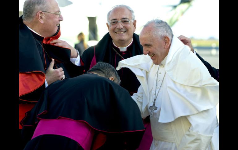 Internacional | El Pontífice aterriza en el aeropuerto John F. Kennedy después de las 17:00 horas El Papa Francisco arriba a Nueva York El Pontífice aterriza en el aeropuerto John F. Kennedy, desde donde toma un helicóptero hacia Manhattan Por: EFE 24 de septiembre de 2015 - 16:58 hs NUEVA YORK, ESTADOS UNIDOS (24/SEP/2015).- El Papa Francisco llegó a Nueva York para iniciar su primera visita como Pontífice a la ciudad, donde tendrá una cargada agenda que incluirá actos multitudinarios y un discurso ante los líderes mundiales en las Naciones Unidas. El avión de Francisco aterrizó poco después de las 17.00 hora local en el aeropuerto John Fitzgerald Kennedy (JFK), procedente de Washington y portando las banderas de Estados Unidos y del Vaticano. El Papa fue recibido sobre la pista por miembros del clero, incluido el nuncio apostólico Bernardito Auza, representante del Vaticano ante la ONU, y otros responsables de la Iglesia. También le esperaban un grupo de niños, a los que un sonriente Francisco se acercó a saludar. El Pontífice pasó unos minutos conversando con los pequeños, que le regalaron una colección de oraciones escrita por estudiantes de centros católicos de la ciudad. Uno de ellos le entregó además un muñeco del propio Papa, que Francisco, entre risas, no dudó en sujetar. Desde la misma pista, el Pontífice tomó un helicóptero para trasladarse rápidamente a Manhattan. Allí encabezará esta misma tarde un servicio religioso en la remozada catedral de San Patricio, en la Quinta avenida, donde ya desde hace horas se congregan multitudes para verlo de cerca. El Papa será recibido en las escalinatas del templo por el arzobispo de Nueva York, el cardenal Timothy Dolan, y el rector de la catedral, monseñor Robert Ritchie, además de autoridades estatales y municipales. Mañana viernes, Francisco estará en la sede de las Naciones Unidas, donde ofrecerá un discurso ante unos 150 jefes de Estado y de Gobierno, reunidos para aprobar la nueva agenda global de desarrollo. A continuación, visitará el memorial del 11S y una escuela del barrio latino de Harlem, antes de darse un baño de masas con una procesión por Central Park a la que asistirán 80 mil personas que lograron entradas en un sorteo organizado por las autoridades locales. Su último acto en la Gran Manzana será una misa con unos 20 mil fieles en el Madison Square Garden, antes de continuar viaje el sábado hacia Filadelfia. Nueva York ha puesto en marcha un inmenso dispositivo de seguridad para la visita del Papa, durante la que se cerrarán al tráfico numerosas zonas del centro de Manhattan. Temas Norte América Estados Unidos Nueva York Papa Francisco Lee También Chivas y América calientan en redes el Clásico Nacional de la Fecha FIFA ALERTA en Jalisco por formación de ciclón "Raymond" Esta es la última guerra que Trump resolvió, según él mismo Las guerras que Trump dice haber resuelto y por las que merece el Nobel Recibe las últimas noticias en tu e-mail Todo lo que necesitas saber para comenzar tu día Registrarse implica aceptar los Términos y Condiciones