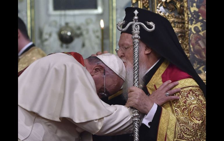 Internacional | El líder de la Iglesia Católica se reúne con el patriarca de Constantinopla en Turquía El Papa Francisco pide bendición a Bartolomé I El líder de la Iglesia Católica se reúne con el patriarca de Constantinopla en su visita a Turquía Por: EL INFORMADOR 30 de noviembre de 2014 - 02:25 hs CIUDAD DEL VATICANO (30/NOV/2014).- El Papa Francisco se inclinó ante el patriarca ecuménico Bartolomé I y le dijo: “Bendíceme a mí y a la Iglesia de Roma” al final de un oficio ecuménico ayer por la noche, en la Catedral de Estambul. El patriarca besó la cabeza de Francisco. Las dos ramas del cristianismo representadas por Bartolomé y Francisco se separaron en 1054 debido a sus diferencias sobre el poder del papado. La visita de Francisco se produce en un momento sumamente tenso para Turquía, cuando la milicia Estado Islámico (EI) está tomando territorios en los vecinos Siria e Iraq y alrededor de 1.6 millones de refugiados han cruzado la frontera. Ayer, el Papa Francisco encabezó una misa especial en la Catedral del Espíritu Santo de Estambul ante fieles de distintas nacionalidades, en la continuación de su visita a Turquía. En medio de estrictas medidas de seguridad, el Pontífice fue recibido por unas 200 personas que le esperaban afuera del templo, donde soltó una paloma blanca en señal de paz. De acuerdo con la agencia turca de noticias Anadolu, la mayoría de los asistentes fueron cristianos, pero también había buena cantidad de musulmanes que quisieron conocer al Papa. En una ceremonia en varios idiomas, Francisco agradecido el “gesto fraternal” de los feligreses por asistir pese a la diversidad de sus creencias. El Papa llegó el viernes a Turquía y expresó su deseo de que dicho país se mantenga como un lugar de encuentro, diálogo y paz. El Vaticano evitó llamar “oración cristiana” al gesto del Papa Francisco en la Mezquita Azul de Estambul y lo calificó de “adoración silenciosa” para no generar “un malentendido”. Con información de EFE y AFP Temas Europa Turquía Iglesia Católica Papa Francisco Lee También Dr. Simi llega al Vaticano; le entregan peluche al Papa León XIV Cierres viales por la Romería 2025 comienzan este jueves La gran reunión mágica Romería: Los kilómetros al ritmo de la fe Recibe las últimas noticias en tu e-mail Todo lo que necesitas saber para comenzar tu día Registrarse implica aceptar los Términos y Condiciones