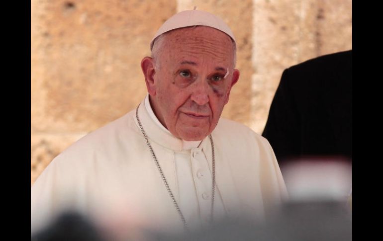 CARTAGENA, COLOMBIA (10/SEP/2017).- El Papa Francisco se golpeó en un ojo y se vio sangrar su ceja izquierda por un frenazo del Papamóvil que lo hizo ir contra el vidrio del carro. Su vestido se manchó de sangre y el ojo lastimado se ve bastante inflamado.El Papa decidió bajarse del carro, caminar y saludar a los fieles que esperan su bendición. El Pontífice, a pesar del golpe, no abandonó su recorrido y continúa con su agenda.Se dirige del populoso barrio San Francisco a la celebración del Angelus y a la iglesia de San Pedro Claver, en esta ciudad ubicada en el Caribe colombiano.