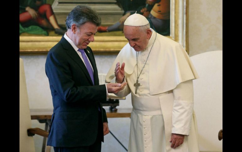 Internacional | Francisco conversó a puerta cerrada por 20 minutos con el presidente colombiano El Papa ofrece 'ayudar' en proceso de paz en Colombia Francisco conversó a puerta cerrada por 20 minutos con el presidente colombiano, Juan Manuel Santos Por: AFP 15 de junio de 2015 - 07:05 hs Francisco sabe de la difícil situación entre las FARC y el gobierno de Santos. AFP / A. di Meo CIUDAD DEL VATICANO (15/JUN/2015).- El Papa Francisco ofreció su "ayuda" personal y la de la iglesia católica al presidente colombiano Juan Manuel Santos para el proceso de paz con la guerrilla de las FARC en Colombia durante la audiencia privada celebrada este lunes en el Vaticano, según relató el mandatario sudamericano. "Lo que pueda hacer yo personalmente o la Iglesia cuente con nosotros. Lo apoyamos y si necesita que juguemos un papel estamos dispuestos a hacerlo, a ayudarlo", le dijo Francisco según declaró Santos a la prensa al término de la audiencia con el pontífice. Se trata de un apoyo importante en este momento para el mandatario sudamericano debido a las dificultades que las negociaciones están atravesando por los atentados y arremetidas de la guerrilla en los últimos días. "Se habló en particular del proceso de reconciliación en curso en ese país, de la complejidad de las negociaciones y de las expectativas que se abren con el logro de un acuerdo de paz", reconoció en un comunicado oficial el Vaticano. Francisco conversó a puerta cerrada por veinte minutos con el presidente colombiano en su biblioteca privada, en el segundo piso del palacio apostólico. "Usted es la persona por la que más he rezado, mucho, mucho y mucho por el proceso de paz y pido, pido por ello", le dijo el Papa al inicio del encuentro. "A eso he venido, a pedirle ayuda e iluminación", le respondió Santos, quien reconoció más tarde su emoción. "Ha sido algo que me ha llegado al fondo del corazón. Le pedí que siguiera rezando, por mí y los colombianos, necesito su apoyo y su iluminación ", comentó. Al término del encuentro, el presidente presentó a la delegación que lo acompaña formada por unas diez personas, entre ellas la ministra de Relaciones Exteriores, María Angela Holguín. Durante el habitual intercambio de regalos Santos regaló una vajilla de cerámica pintada a mano y realizada en Carmen de Viboral (Antioquia), mientras el pontífice le donó un medallón de bronce de San Martín de Tours, el santo que ayuda a los pobres y que "recuerda a los gobernantes de que hay que cobijar a los pobres", le dijo. "Santo Padre en estos cuatro años Colombia ha sido el país donde más ha bajado la pobreza de toda América Latina", le comentó el mandatario. El Papa bendijo también una original y pequeña bandera de Colombia con un paloma de paz, que según fuentes de la delegación suele permanecer en el escritorio del presidente. Santos se reunió luego con el Secretario de Estado del Vaticano, Pietro Parolin, número dos del Vaticano. Temas Europa Colombia Ciudad del Vaticano Juan Manuel Santos Papa Francisco Recibe las últimas noticias en tu e-mail Todo lo que necesitas saber para comenzar tu día Registrarse implica aceptar los Términos y Condiciones