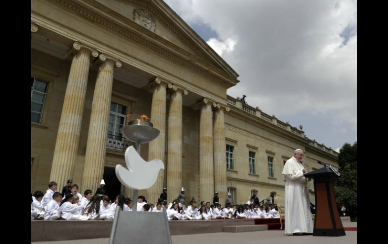 BOGOTÁ, COLOMBIA (07/SEP/2017).- El Papa Francisco pidió aquí a los colombianos que huyan "de la tentación de la venganza" y destacó el esfuerzo del pueblo colombiano para poner fin a la violencia armada y hallar caminos de reconciliación, en el marco de su encuentro con el presidente Juan Manuel Santos."Este encuentro me ofrece la oportunidad para expresar el aprecio por los esfuerzos que se hacen, a lo largo de la última década, para poner fin a la violencia armada y encontrar caminos de reconciliación", expresó el máximo jerarca de la Iglesia católica en la Plaza de Armas de la Casa de Nariño.Sostuvo que los "pasos dados hacen crecer la esperanza, en la convicción de que la búsqueda de la paz es un trabajo siempre abierto, una tarea que no da tregua y que exige el compromiso de todos".El líder religioso pidió a los colombianos "no decaer en el esfuerzo por construir la unidad de la nación y a pesar de todos los obstáculos, diferencias y distintos enfoques sobre la manera de lograr la convivencia pacífica, persistir en la lucha para favorecer la cultura del encuentro".Esta cultura, continuó, "exige colocar en el centro de toda acción política, social y económica a la persona humana, su altísima dignidad y el respeto por el bien común"."Que este esfuerzo nos haga huir de toda tentación de venganza y búsqueda de intereses solo particulares y de largo plazo. Cuanto más difícil es el camino a la paz y al entendimiento, más empeño hemos de poner en reconocer al otro, en sanar las heridas y construir puentes, en estrechar lazos y ayudarnos mutuamente", subrayó.El Papa Francisco pidió a los gobernantes y clase política colombiana, presente en la Casa de Nariño, que pongan la "mirada en todos aquellos que hoy son excluidos y marginados por la sociedad, aquellos que no cuentan para la mayoría y son postergados y arrinconados. Todos somos necesarios para crear y formar la sociedad".Sostuvo que las autoridades colombianas tienen "una hermosa y noble misión, que es al mismo tiempo una difícil tarea. Resuena en cada colombiano el aliento del gran Gabriel García Márquez", al tiempo que lo citó: "Sin embargo, frente a la opresión, el saqueo y el abandono, nuestra respuesta es la vida (...)".Continuó con la cita: "Ni los diluvios, ni las pestes, ni las hambrunas, ni los cataclismos, ni siquiera las guerras eternas a través de los siglos y los siglos han conseguido reducir la ventaja tenaz de la vida sobre la muerte. Una ventaja que aumenta y se acelera"."Es mucho tiempo pasado en el odio y la venganza... La soledad de estar siempre enfrentados ya se cuenta por décadas y huele a cien años; no queremos que cualquier tipo de violencia restrinja ni anule una vida más", enfatizó.Afirmó que vino a Colombia, para "decirles que no están solos, que somos muchos los que queremos apoyarlos en este paso (de la paz y la reconciliación); este viaje quiere ser un aliciente para ustedes, un aporte que en algo allane el camino hacia la reconciliación y la paz".