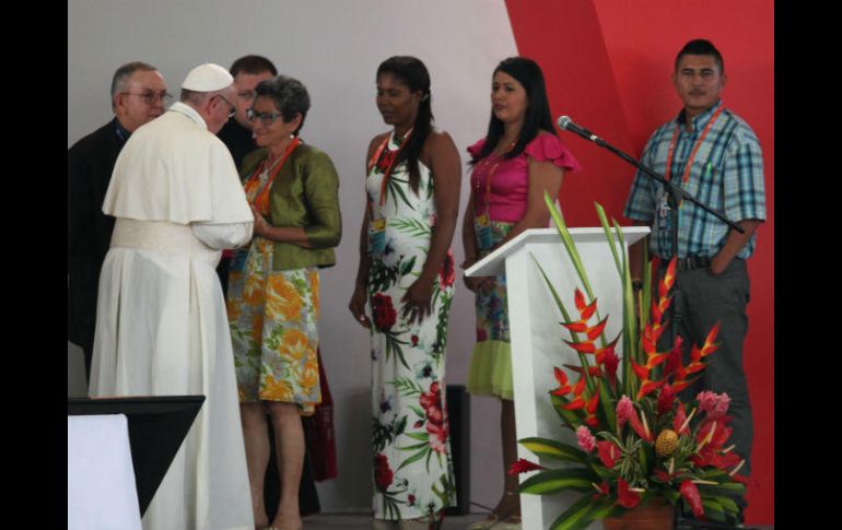 VILLAVICENCIO, COLOMBIA (08/SEP/2017).- El Papa Francisco exigió este viernes "verdad" y "justicia" para los millones de víctimas del largo y sangriento conflicto colombiano."Resulta indispensable también asumir la verdad (...). La verdad es una compañera inseparable de la justicia y de la misericordia. Juntas son esenciales para construir la paz", dijo el pontífice en un emotivo acto que reunió a víctimas y verdugos arrepentidos en la ciudad de Villavicencio (centro).Francisco se enfocó en los cerca de 7.5 millones de muertos, heridos y desplazados que deja por ahora este conflicto que involucra a guerrillas, paramilitares, agentes del estado y narcotraficantes.El pontífice argentino, que apoyó el acuerdo de paz con la guerrilla marxista y hace lo propio con los diálogos con el ELN, el único grupo rebelde activo, encabezó en un parque un multitudinario y colorido acto, inédito en las tres visitas papales que ha recibido Colombia.Sobre un inmenso escenario, sentado y visiblemente emocionado, Francisco escuchó testimonios desgarradores bajo la figura del Cristo de Bojayá, mutilado durante la masacre de 79 civiles que se resguardaban en un templo de combates entre las FARC y paramilitares.Entre las víctimas que hablaron estaba Pastora Mira García, que perdió a su marido y a sus dos hijos en diferentes hechos de violencia."Ahora coloco este dolor y el sufrimiento de las miles de víctimas de Colombia a los pies de Jesús Crucificado, para que (...) sea transformado en bendición y capacidad de perdón para romper el ciclo de violencia de las últimas cinco décadas en Colombia", dijo la mujer.El papa también escuchó con atención los testimonios de Juan Carlos Murcia, quien en sus 12 años en las FARC perdió la mano izquierda manipulando explosivos, y el de Deisy Sánchez, reclutada por las Autodefensas Unidas de Colombia (AUC), que fue el principal grupo paramilitar y se desmovilizó en 2006.La cuestión de la verdad y de la justicia es una de las más espinosas del posconflicto. El acuerdo con las FARC prevé que los responsables de delitos atroces, incluidos agentes del Estado, eviten la cárcel si confiesan sus crímenes, reparen a las víctimas y prometan nunca más ejercer la violencia.El pacto es rechazado por amplios sectores encabezados por la influyente derecha por considerarlo indulgente con la rebelión comunista.