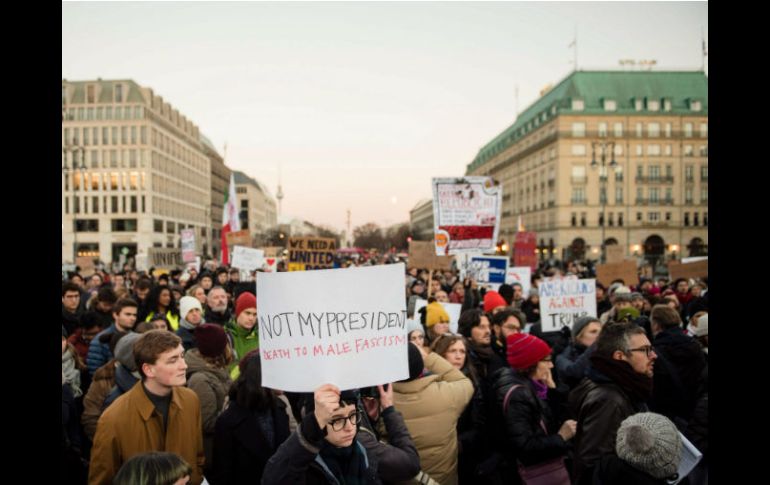 BERLÍN, ALEMANIA (12/NOV/2016).- Cientos de personas protestaron hoy en Berlín contra el presidente electo de Estados Unidos, Donald Trump, al tiempo que políticos e intelectuales continuaron sus críticas contra las propuestas que el republicano hizo durante su campaña electoral. Unas 120 personas se manifestaron en la capital alemana, llevando pancartas con lemas como "no más muros" o "Berlín contra Trump". Mientras que cientos más se congregaron a las puertas de la embajada estadounidense en Alemania, situada junto a la emblemática Puerta de Brandenburgo, donde llamaron a liberar al mundo de las propuestas de Trump, al que muchos acusan de haber sostenido durante su campaña un discurso de odio, así como de misoginia y racismo.Las protestas, que transcurrieron de forma pacífica, se enmarcan en la iniciativa "Protestas contra Trump Berlín", que más de tres mil personas firmaron en la red social Facebook, pero a la que solo acudieron unas 400, según la policía.A las protestas contra el presidente electo se sumaron las críticas de personajes de la política, entre ellos el vicecanciller y ministro de Economía, Sigmar Gabriel, que alertó que la elección de Trump cuestiona el sistema de valores occidental."La victoria de Trump es una fuerte alerta", escribió en un comentario para el semanario alemán Der Spiegel.Opinó que no es el "choque de civilizaciones" entre el cristianismo y el islam lo que pone en jaque al mundo, sino "entre los valores de las democracias liberales y sociales contra las nuevas visiones de la sociedad que proponen movimientos autoritarios, nacionalistas y chovinistas".Gabriel alertó que la incitación al odio no es más que una forma de atraer a la gente, pero que lo que de verdad está en juego "es la abolición de la modernidad"."Ya no se darán por hecho cosas como que las mujeres puedan ir a trabajar sin tener que disculparse por ello; que los jefes gestionen sus empresas como terratenientes; o que las parejas homosexuales puedan pasera por la calle sin miedo a sufrir represión", alertó.Según el funcionario alemán, Trump "civilizará" su lenguaje cuando asuma como Presidente, pero "sus seguidores le exigirán que cumpla sus promesas y Estados Unidos volverá a la época anterior al presidente John F. Kennedy", alertó.El jefe de la fracción parlamentaria de la Unión Democristiana (CDU), Volker Kauder, consideró que tras la victoria de Trump, Europa tiene ahora la obligación de aumentar la unidad y gestionar cuestiones de seguridad, creando incluso un Ejército europeo.En declaraciones a un periódico alemán, Kauder dijo que Europa y Alemania tendrán que asumir una mayor responsabilidad en seguridad y defensa, como ya lo había pedido el presidente estadunidense Barack Obama.En la campaña electoral, Trump defendió que aliados como Japón o Alemania pagarán a cambio de protección militar de Estados Unidos y manifestó su intención en dejar de actuar como la policía del mundo.El presidente de la Comisión Europea, Jean-Claude Juncker, señaló esta semana que Europa debería desprenderse de la idea de que los estadunidenses son los responsables de la seguridad europea.Sin embargo, el ministro de la Cancillería Federal y jefe de gabinete, Peter Altmaier, indicó que no habrá grandes cambios en política exterior estadunidense."Creo que Estados Unidos no tendrá alternativa a seguir siendo un importante actor en la escena internacional", afirmó Altmaier la noche del viernes durante un acto en Duisburgo.Reconoció que se podría retrasar el acuerdo de libre comercio entre la Unión Europea y Estados Unidos, "se tardará mucho tiempo antes de avanzar", consideró.El director del Festival de Cine Internacional de Berlín, Dieter Kosslik, definió el triunfo de Trump como una "victoria del marketing", la segunda en lo que va del año, tras el referendo en Reino Unido sobre su permanencia o no en la Unión Europea."En los dos casos se llegó lejos con descaradas mentiras", señaló.Kosslik definió el resultado de las elecciones estadounidenses de "macabro entretenimiento", y dijo que al parecer, se puede llegar a presidente con ayuda del negocio del espectáculo. "No es la primera vez", dijo en referencia al expresidente estadunidense Ronald Reagan, quien antes de ser mandatario fue actor. Kosslik opinó que la elección de Trump traerá cambios en la industria del cine, algo que se verá tanto en el cine establecido como en el más crítico. "Ya ocurrió tras los atentados del 11 de septiembre de 2001, cuando se hicieron muchas películas patrióticas, en parte influidas por políticos o con ayuda de los políticos". Y fue más allá: "La Casa Blanca se convertirá en Broadway".