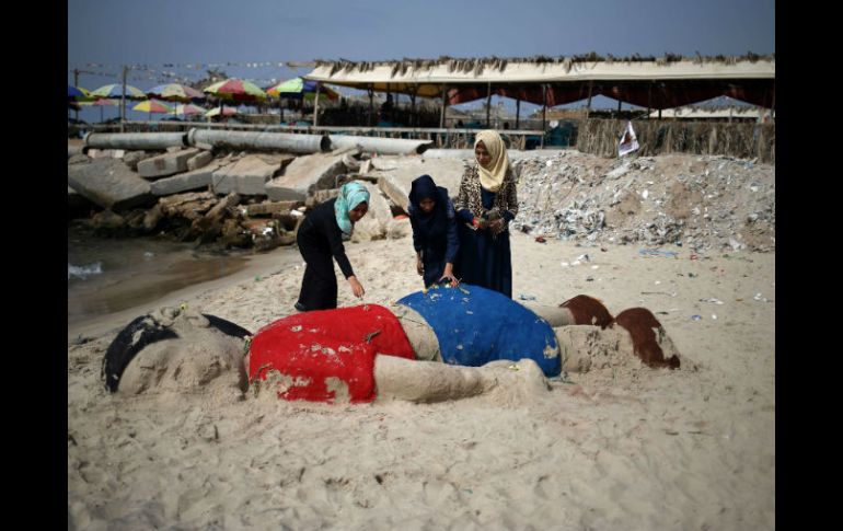 Internacional | Habitantes crean figura en recuerdo a Aylan Kurdi, quien murió en una playa de Turquía En playa de Gaza hacen estatua de arena de niño sirio ahogado Habitantes crean la figura en recuerdo a Aylan Kurdi, quien murió en una playa de Turquía Por: AFP 7 de septiembre de 2015 - 15:12 hs La estatua de varios metros de largo, reproduce la imagen del cuerpo de Aylan boca abajo en una playa en Turquía. AFP / M. Abed GAZA, PALESTINA (07/SEP/2015).- Los habitantes de Gaza levantaron este lunes una estatua de arena en recuerdo del niño sirio Aylan Kurdi, que murió ahogado en una playa de Turquía la semana pasada cuando su familia intentaba llegar a Europa para huir de la guerra en su país. La estatua de varios metros de largo, reproduce la imagen del cuerpo de Aylan boca abajo en una playa en Turquía, vestido con un pantalón corto azul y una camiseta roja. Para Arwa Arbijan, una residente de Gaza, la imagen tuvo una resonancia especial, ya que cerca de la playa donde se levantó la estatua murieron cuatro niños por el impacto de un cohete israelí durante la guerra de 2014. "Cuando vi esta estatua que representa a Aylan Kurdi, el niño que murió ahogado cuando huía de Siria, sentí una profunda tristeza y una gran emoción. También recordé a los niños de la familia Bakr que murieron en el playa de Gaza durante la última guerra", agregó Arbijan. El pequeño Aylan Kurdi, de 3 años, se ahogó con otras once personas --entre ellas su hermano de 5 años y su madre-- al naufragar dos embarcaciones que trataban de llegar en la noche del martes a la isla griega de Kos desde la ciudad costera turca de Bodrum. Las fotos de Aylan, que ilustran el drama de miles de refugiados que huyen de la guerra en Siria, generaron conmoción y fueron ampliamente difundidas por los medios de todo el mundo. Temas Medio Oriente Turquía Siria Palestina Refugiados Lee También Israel libera a todos los miembros de flotillas que navegaban hacia Gaza Policía de Hamás y milicias locales se enfrentan en Gaza Israel se resiste a publicar lista completa de palestinos que serán liberados ¿Irán asistirá a la cumbre de paz sobre Gaza en Egipto? Recibe las últimas noticias en tu e-mail Todo lo que necesitas saber para comenzar tu día Registrarse implica aceptar los Términos y Condiciones