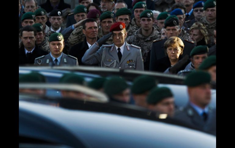 Internacional | La ceremonia tuvo lugar en la iglesia de San Michael de esa localidad bávara Encabeza Merkel funeral de soldados alemanes caídos en Afganistán Angela Merkel en compañia del ministro de Defensa, Karl Theodor zu Guttenberg, encabezaron el funeral de los tres militares caídos en Afganistán Por: NTX 25 de febrero de 2011 - 13:41 hs La canciller alemana, Angela Merkel, durante la ceremonia de despedida en la ciudad de Regen. REUTERS / BERLÍN, ALEMANIA (25/FEB/2011).- La canciller federal alemana Angela Merkel y el ministro de Defensa, Karl Theodor zu Guttenberg, encabezaron hoy en la localidad de Regen el funeral de los tres militares caídos en Afganistán. La ceremonia tuvo lugar en la iglesia de San Michael de esa localidad bávara y fue transmitida en directo por la televisión. Los tres militares alemanes murieron el viernes pasado por los disparos de un oficial del ejército afgano que abrió sorpresivamente fuego contra ellos en una base de avanzada en el norte de ese país, donde al parecer asistía a un entrenamiento. El incidente se produjo a 70 kilómetros al sur de la ciudad de Kunduz, donde está principalmente destacado el contingente militar alemán. El individuo disparó contra un grupo de soldados que realizaban tareas técnicas en un puesto militar. Otros seis soldados fueron heridos hasta que el atacante fue sometido. El hecho de que el ataque fuera perpetrado por un militar afgano, quien supuestamente iba a colaborar con las fuerzas alemanas, se consideró síntoma de la creciente inseguridad de la zona. La violencia en Afganistán alcanzó momentos trágicos en las últimas semanas: tres personas murieron y 14 resultaron heridas el pasado sábado como consecuencia de un asalto de tres atacantes suicidas contra un banco, según informó la oficina del presidente afgano Hamid Karzai. El funeral se desarrolló en un tono muy solemne al que asistieron 650 invitados. Fuera del edificio, miles de ciudadanos acudieron para dar el último adiós a los soldados de entre 21 y 30 años, todos procedentes de esta zona del país. El ministro Karl Theodor zu Guttenberg habló poco después de la homilía. 'El recuerdo va a tres compañeros, tres jóvenes que ya no están aquí', dijo y añadió que 'estaban en Afganistán porque querían ayudar al pueblo afgano a construir un futuro mejor. Perdieron, sin embargo, su propio futuro'. 'Lo que pasó ahí permanece al día de hoy poco claro', añadió zu Guttenberg y puso énfasis en la insensatez de la muerte de estos jóvenes 'por los disparos de un soldado del ejército afgano con quien iban a colaborar'. Temas Europa Alemania Angela Merkel Lee También Ángela Aguilar celebra su cumpleaños 22 sin Christian Nodal Apuñalan a alcaldesa recién electa en Alemania; esto se sabe Estrategia contra los aranceles Susana Zabaleta revela lo que piensa sobre Christian Nodal Recibe las últimas noticias en tu e-mail Todo lo que necesitas saber para comenzar tu día Registrarse implica aceptar los Términos y Condiciones
