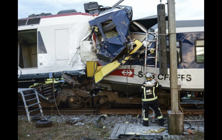 Internacional | El accidente de las locomotoras deja de 35 a 44 muertos según medios Encuentran sin vida a conductor de tren en Suiza El accidente de las locomotoras deja de 35 a 44 muertos según medios de información Por: AFP 29 de julio de 2013 - 19:16 hs GINEBRA, SUIZA (29/JUL/2013).- El cuerpo sin vida del conductor de una de las dos locomotoras accidentadas cerca de Granges-près-Marnans, en Suiza romana, fue extraido por los bomberos la noche del lunes al martes, según un comunicado de la policía cantonal de Vaud. El cuerpo del conductor de una de los dos locomotoras, hallado en su cabina, fue rescatados a las 01:30 del martes (23:30 GMT) por los bomberos, que tuvieron que separar primero las ramas que se habían encajado una en la otra, indicó la policía. Una autopsia fue ordenada por el fiscal para identificar a la víctima del choque de trenes ocurrido la noche del lunes entre dos trenes regionales, que por otro lado también dejó de 35 a 44 heridos, según medios de información ya que hasta el momento no hay información oficial sobre el número de lesionados. El conductor de la otra locomotora fue ayudado por los socorristas. Los bomberos trabajaron largas horas para despejar la pista, con la ayuda de una grúa de 200 toneladas, al tiempo que la línea, cerrada de inmediato tras el accidente, seguirá sin poder ser usada el martes. La policía, en un comunicado difundido por la noche, dijo que 26 personas fueron hospitalizadas, pero que su vida no estaba en peligro. La colisión se produjo alrededor de 19:00 locales (17:00 GMT) en Granges-près-Marnand en el cantón de Vaud, entre un tren que se dirigía a Lausana y otro que venía de esta ciudad. Los trenes iban en la misma vía y debían cruzarse en la estación de Granges-près-Marnand, según un portavoz del servicio ferrocarriles federales (SBB) presente en el lugar. Aún no se informa de la causa del accidente, que se produjo a unas pocas decenas de metros de la estación de la pequeña ciudad en el norte del cantón de Vaud, situada en el campo abierto. El tráfico fue interrumpido en una parte de la línea que une las ciudades de Palézieux y de Payerne, indicaron los ferrocarriles federales (CFF). Un importante dispositivo de seguridad, con policía, bomberos, ambulancias, fue desplegado en el lugar. "Muchos pasajeros están heridos o son atendidos por los servicios de rescate a la orilla de las vías", indicó el sitio internet del diraio 20 minutos. Fotos difundidas por medios de prensa suizos mostraban las partes dañadas y empotradas entre sí de ambos trenes. Temas Europa Muertes Suiza Accidentes ferroviarios Lee También Choque en la colonia Aldama Tetlán deja dos lesionados Lluvias dejan 29 muertos en un día en México Fallece influencer Fede Dorcaz en presunto intento de robo en la CDMX Fallece Junior Dutra al realizarse cirugía estética en manos de dentista sin licencia Recibe las últimas noticias en tu e-mail Todo lo que necesitas saber para comenzar tu día Registrarse implica aceptar los Términos y Condiciones