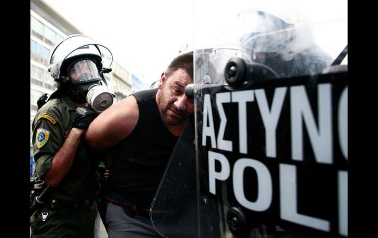 Internacional | En el incidente se hizo uso de gases lacrimógenos Enfrentamiento entre manifestantes y policías en la huelga general de Grecia Alrededor de 20 mil personas se manifestaron en las calles del centro de Atenas Por: EFE 5 de octubre de 2011 - 07:40 hs Un policía detiene a un manifestante durante la huelga de Grecia. EFE / ATENAS, GRECIA (05/OCT/2011).- Unas 20 mil personas se manifestaron hoy con motivo de una nueva huelga general por las calles del centro de Atenas, donde algunos participantes se enfrentaron a la policía, que reaccionó con el uso de gases lacrimógenos y efectuó varias detenciones. Los principales sindicatos del país habían convocado para hoy una huelga de 24 horas en protesta contra los recortes en sueldos y pensiones, el aumento de impuestos y los despidos que no logran alejar al país de la posible bancarrota. El paro laboral paralizó los servicios públicos y la actividad económica de la capital helénica, suspendiendo también todos los vuelos internacionales hacia el país y el servicios de ferrocarriles, según informaron fuentes sindicalistas a Efe. Al mediodía se celebraron dos manifestaciones separadas convocadas por los sindicatos mayoritarios, al final de las cuales hubo algunos incidentes violentos cuando parte de los participantes arrojaron piedras y artefactos incendiarios contra las brigadas antidisturbios en los entornos de la céntrica plaza Sindagma. Según testigos presenciales, la policía detuvo a varios manifestantes. Un grupo de personas intentó derribar una valla colocada por la policía que cerraba el paso en torno al Parlamento, a lo que las fuerzas del orden reaccionaron con gases lacrimógenos. Otro incidente ocurrió en las afueras de la rectoría de la Universidad de Atenas, en el centro de la ciudad, cuando unas 500 personas que protestaban contra las reformas en la educación, se enfrentaron a la policía. Antes, miles de funcionarios desfilaron con pancartas que leían "reserva igual a despidos" en referencia a la reducción del tres por ciento de la plantilla del sector público en los próximos tres meses, empezando con el despido de unos 30 mil funcionarios. Una pancarta del sindicato de funcionaros públicos (ADEDY) decía "No toquen nuestros derechos de un siglo", en alusión a los primeros despidos en el sector público desde hace cien años. El sindicato PAME, afiliado al partido comunista, tenía como eslogan "que se vayan ahora y que se lleven el memorando", en referencia al acuerdo que el Gobierno socialista ha alcanzado con la Unión Europea (UE), el Banco Central Europeo (BCE) y el Fondo Monetario Internacional (FMI) para seguir recibiendo ayudas. La confederación de trabajadores que representa al sector privado (GSEE) aseguró hoy de que el ausentismo laboral "rozó en muchos sectores el 90 %". Añadió que "los manifestantes también lanzaron un mensaje fuerte de protesta contra las políticas del Gobierno y el chantaje de la troika (los acreedores internacionales de Grecia)". El GSEE reiteró su llamada a una nueva huelga general de 24 horas convocada para el próximo 19 de octubre, junto con el ADEDY. Pese a la gran crisis en el sector comercial, con el cierre de un 20 % de las tiendas minoristas en Atenas, los comerciantes del centro capitalino mantuvieron sus negocios abiertos y no se sumaron a la huelga. Temas Europa Huelga Manifestaciones en el mundo Grecia Lee También Marchas CDMX: HOY, 17 de octubre, estas son las afectaciones viales Sin maíz no hay país Esto se sabe de la megamarcha de maestros en CDMX el 17 de octubre ¿Cómo se despliegan los cárteles mexicanos en Australia? Recibe las últimas noticias en tu e-mail Todo lo que necesitas saber para comenzar tu día Registrarse implica aceptar los Términos y Condiciones