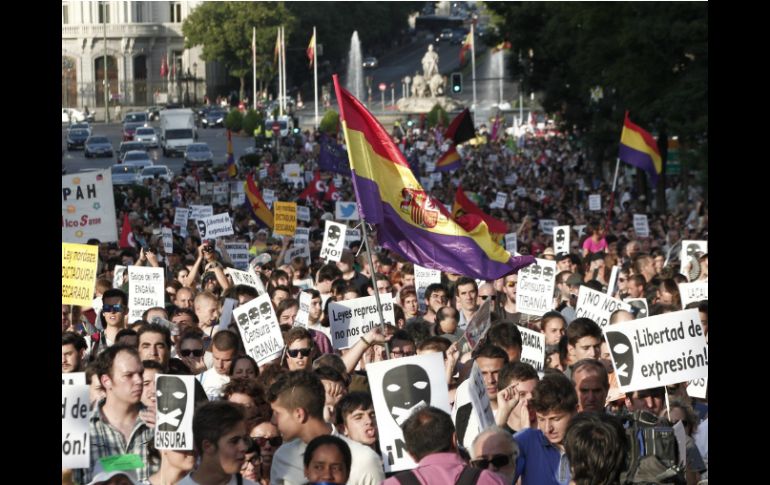 Internacional | La protesta se realizó en contra de la ley que prevé multas para los manifestantes Españoles se manifiestan en vísperas de vigencia de 'Ley Mordaza' La protesta se realizó en contra de la ley que prevé multas de hasta 600 mil euros para los manifestantes Por: NTX 30 de junio de 2015 - 18:57 hs Los manifestantes desplegaron pancartas que decían 'No somos delito' y 'La protesta es un derecho'. NTX / J. Rojas MADRID, ESPAÑA (30/JUN/2015).- Cientos de personas salieron a la calles del centro de Madrid a protestar en vísperas de que entre en vigor la Ley de Seguridad Ciudadana y la reforma del Código Penal, que popularmente se conoce como "Ley Mordaza". La nueva legislación, que entrará en vigor mañana miércoles, ha recibido numerosas críticas y ha causado polémica desde que fue anunciada. La "ley de seguridad ciudadana" prevé multas de hasta 600 mil euros (655 mil dólares) para ciertas manifestaciones o actos de protesta no autorizados. También incluye multas de hasta 30 mil euros (unos 33 mil dólares) por desórdenes públicos o por obstruir acciones de las autoridades como la expulsión de familias desalojadas, además de que una "falta de respeto" a un policía podrá ser sancionada con 600 euros (667 dólares). En ese marco, tres activistas de la organización ambientalista Greenpeace desplegaron este martes una pancarta de 32 metros cuadrados en una grúa situada junto al Congreso de los Diputados contra la llamada "ley mordaza". Otra pancarta citó el lema "la protesta es un derecho". Los manifestantes estiman que a partir de mañana miércoles el ejercicio de los derechos de expresión, reunión y manifestación se basarán en la interpretación de las fuerzas de seguridad del Estado y el Ministerio del Interior. La ley fue aprobada el 26 de marzo pasado con los únicos votos del Partido Popular (PP), aún en el Gobierno, con mayoría absoluta en ese momento. El portavoz de Greenpeace, Miguel Ángel Soto, señaló que "esta ley carece de justificación, ya que no hay problemas graves de seguridad ciudadana en España". Añadió que "está pensada para silenciar con multas las voces que critican la gestión del gobierno y las consecuencias de la crisis social, ambiental y económica producto de la corrupción, los recortes sociales y de derechos y la privatización de los servicios públicos". Greenpeace advirtió que las "nuevas infracciones (...) señalan directamente las formas de protesta pacífica de algunos colectivos como los activistas anti-desahucios, las mareas ciudadanas, los sindicalistas y los afectados por las preferentes, que no suponen ningún peligro para la seguridad ciudadana". Temas Europa España Manifestaciones en el mundo Libertad de Expresión Lee También Teatro Diana: Cartelera de eventos de este fin de semana Marchas CDMX: HOY, 17 de octubre, estas son las afectaciones viales Sin maíz no hay país Esto se sabe de la megamarcha de maestros en CDMX el 17 de octubre Recibe las últimas noticias en tu e-mail Todo lo que necesitas saber para comenzar tu día Registrarse implica aceptar los Términos y Condiciones