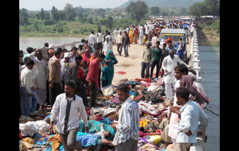 Internacional | Iban cruzando un puente y entraron en pánico por un rumor de que iba a colapsar Estampida mata alrededor de 60 peregrinos en la India Iban cruzando un puente en procesión y entraron en pánico por un rumor de que iba a colapsar Por: NTX 13 de octubre de 2013 - 07:32 hs Miles de peregrinos se dirigían al templo Ratangarh para un ritual religioso. AFP / LONDRES, INGLATERRA (13/OCT/2013).- Al menos 60 peregrinos perdieron la vida y otros 100 resultaron heridos hoy al registrarse una estampida en un templo en el estado central indio de Madhya Pradesh, informaron fuentes oficiales. Según los primeros informes policiales, decenas de miles de personas estaban reunidas en el templo de Ratangarh con motivo de una festividad en honor a la diosa Durga, destacó la británica BBC. La estampida fue causada por los rumores de que un puente que cruzaban cientos de fieles estaba a punto de colapsar, lo que ocasiono la estampida mientras que otras se ahogaron tras lanzarse desde un puente al río. Este tipo de incidentes son frecuentes en la India por el alto número de peregrinos que asisten a los rituales religiosos y a las deficiencias en la gestión de las concentraciones o por la precariedad de las infraestructuras en torno a los lugares de culto. Miles de peregrinos se dirigían este domingo al templo Ratangarh para asistir a un ritual religioso en el último día de la importante fiesta india de Navratri. Temas Asia Accidentes en el mundo India Lee También Jugadores de LaLiga se manifiestan contra el partido en Miami Protestan contra Trump en Estados Unidos Accidente de autobús en Brasil deja 15 muertos Represión de ICE en Chicago Recibe las últimas noticias en tu e-mail Todo lo que necesitas saber para comenzar tu día Registrarse implica aceptar los Términos y Condiciones