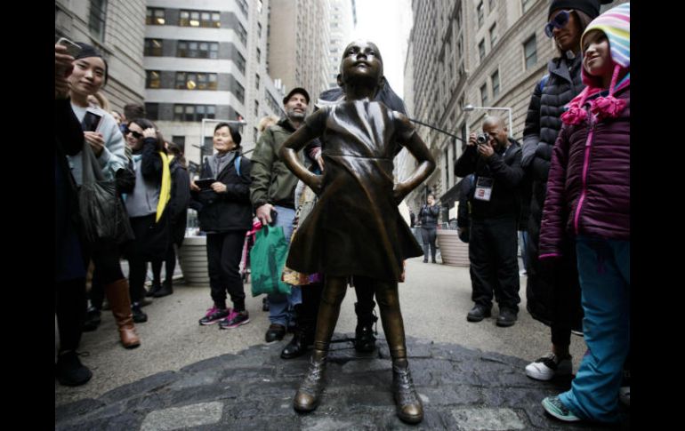GUADALAJARA, JALISCO (27/MAR/2017).- El clamor popular pudo más: la "Niña sin miedo", la escultura colocada en el corazón financiero de Wall Street en torno al Día Internacional de la Mujer de principios de este mes, se quedará en el sitio al menos por otro año. La escultura de bronce fue colocada en la pequeña explanada de la calle Broadway, en el barrio financiero de la ciudad de Nueva York, en concreto como parte de una campaña del fondo State Street Global para que grandes empresas den más puestos directivos a mujeres. Sin embargo, no había pasado un día cuando la obra de la artista Kristen Visbal, enfrentada a la escultura del "Toro que embiste" en la zona financiera, había sido tomada por muchas personas como símbolo del poder de las mujeres en todo el mundo. El permiso para instalar la escultura vencía el 2 de abril, y simpatizantes lanzaron una iniciativa la semana pasada para conseguir que las autoridades de la ciudad extendieran esa autorización. Finalmente, la propuesta triunfó y, según anunció el gobierno del alcalde Bill DeBlasio --quien opinó que la niña ha impulsado "poderosas conversaciones públicas"--, la escultura se quedará en el islote del Departamento de Transporte hasta febrero de 2018.