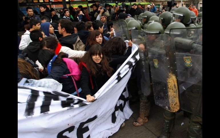 Internacional | La protesta terminó con disturbios que dejaron 35 detenidos Estudiantes chilenos marchan por mejoras en educación Unos 2 mil 500 estudiantes de Secundaria marcharon este miércoles por el centro de Santiago en demanda de un mejor sistema educativo público, gratuito y de calidad, durante una protesta que terminó con disturbios que dejaron 35 detenidos Por: AFP 20 de junio de 2012 - 17:43 hs Desde el pasado año, los estudiantes chilenos han convocado más de 40 marchas para exigir la reforma del sistema educativo. REUTERS / SANTIAGO, CHILE (20/JUN/2012).- Unos 2 mil 500 estudiantes de Secundaria marcharon este miércoles por el centro de Santiago en demanda de un mejor sistema educativo público, gratuito y de calidad, durante una protesta que terminó con disturbios que dejaron 35 detenidos, según un informe oficial. Los manifestantes, convocados por la Asamblea Coordinadora de Estudiantes Secundarios, marcharon bajo el lema "A un año de lucha aún no se escucha" y reclamaron al gobierno mejoras en la educación secundaria pública, que actualmente es gestionada por los municipios, y que según los estudiantes debería retornar a manos del ministerio. En las cercanías de la Estación Mapocho, donde debía finalizar la protesta, se registraron disturbios cuando la policía intentó dispersar a los estudiantes. Un grupo de manifestantes destrozó semáforos y mobiliario urbano, además de enfrentarse a la policía lanzando piedras. Los Carabineros repelieron los ataques con carros lanzaguas. Los incidentes dejaron un total de 35 detenidos, "la mayoría de ellos por desórdenes públicos", indicó un comunicado del Gobierno de Santiago. Entre los detenidos hubieron varios periodistas, según constató la AFP. Desde el pasado año, los estudiantes chilenos han convocado más de 40 marchas para exigir la reforma del actual sistema educativo, heredado de la dictadura de Augusto Pinochet (1973-1990), que redujo a menos de la mitad el aporte público y fomentó la inclusión de los centros privados. Actualmente existe una profunda brecha entre la calidad de la educación en los centros públicos y la de muchos privados, que evidencia también las diferencias económicas y sociales entre las familias. El gobierno del presidente Sebastián Piñera ha presentado varios proyectos de ley orientados básicamente a la reforma del sistema universitario para rebajar los intereses de un crédito que utilizan los estudiantes para pagar los aranceles, además de reprogramar deudas morosas, pero no se han registrado mayores cambios en el caso de los estudiantes de Secundaria. Temas América Latina Chile Manifestaciones en el mundo Lee También Dónde ver EN VIVO el México vs Argentina por el Mundial Sub-20 La actualidad de Diego Ochoa, formado en Chivas y destacado en el Mundial Sub-20 José Jerí asume como presidente de Perú Congreso de Perú destituye como presidenta a Dina Boluarte Recibe las últimas noticias en tu e-mail Todo lo que necesitas saber para comenzar tu día Registrarse implica aceptar los Términos y Condiciones