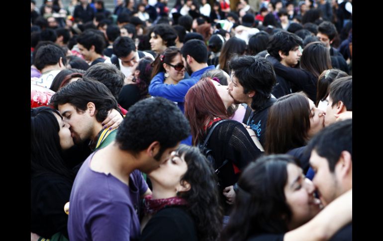 Internacional | El 'besatón' fue convocado por Camila Vallejo, vocera del movimiento universitario Estudiantes chilenos protestan besándose Los estudiantes iniciaron sus protestas hace tres meses con paros, ocupación de escuelas, luego vinieron marchas multitudinarias, huelgas de hambre y otros modos de protesta Por: AP 1 de septiembre de 2011 - 17:38 hs arejas participan en el 'besatón' mundial por la educación convocada hoy. EFE / SANTIAGO, CHILE (01/SEP/2011).- Centenares de estudiantes se besaron largamente el jueves en la plaza de armas de Santiago, en una nueva protesta pacífica para demandar una educación igualitaria y de calidad. Parejas de jóvenes universitarios y secundarios se reunieron en el frontis de la Catedral, en el costado poniente de la plaza, mientras una joven usaba un micrófono para hacerse escuchar y animarlos a empezar la "besatón". Escolares vistiendo uniforme, muchos universitarios con aspecto de hippie y otros con cara de "mateos", se fueron animando poco a poco, hasta que más de un centenar de parejas se besaban simultáneamente, mientras los transeúntes de detenían a mirarlos, y algunos los aplaudía. "Quiero que nos escuchen, que acepten lo que les pedimos para poder volver a estudiar", dijo Javiera, estudiante de diseño, en un brevísimo alto antes de seguir besándose con su pareja. El "besatón" fue convocado por twitter por Camila Vallejo, vocera del movimiento universitario. Un poco antes, medio centenar de escolares interrumpió el tránsito en una de las calzadas de la principal avenida capitalina donde improvisaron un partido de baby fútbol. Esta es la segunda besatón que los jóvenes utilizan como una manera diferente de protestar y exigir cambios estructurales en el sistema educacional. Los estudiantes iniciaron sus protestas hace tres meses con paros, ocupación de escuelas, luego vinieron marchas multitudinarias, huelgas de hambre, vistosas coreografías, que incluyeron Thriller, de Michael Jackson, trasladaron gigantescas pelotas a través de decenas de cuadras, improvisaron una playa donde tomaron el sol, en el centro de la ciudad, se disfrazaron de carro policial lanza aguas. La próxima semana retomarán las paralizaciones. Temas América Latina Chile Manifestaciones en el mundo Lee También Marchas CDMX: Estas son las afectaciones viales de hoy, 13 de octubre Chivas y América empatan en partido amistoso 'Chicharito' marca su primer gol al América en partido amistoso México vs Argentina: ¿Quién ganará el partido según la IA? Recibe las últimas noticias en tu e-mail Todo lo que necesitas saber para comenzar tu día Registrarse implica aceptar los Términos y Condiciones