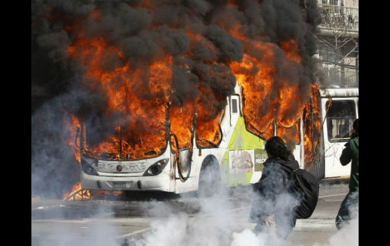 Internacional | Tres autobuses fueron incendiados Estudiantes chilenos protestan violentamente por sistema educativo Tres autobuses fueron incendiados en el transcurso de una hora en los alrededores del Parque Bustamante, en el centro de la capital chilena Por: AFP 8 de agosto de 2012 - 17:25 hs Encapuchados detuvieron los camiones y obligaron a descender a los choferes y pasajeros, para luego incendiarlos. REUTERS / SANTIAGO DE CHILE, CHILE (08/AGO/2012).- Autobuses ardiendo y duros enfrentamientos en las calles de Santiago entre policías y manifestantes fue el saldo este miércoles de una violenta protesta de estudiantes chilenos que exigen un cambio profundo al sistema educativo en el país. Tres autobuses fueron incendiados en el transcurso de una hora en los alrededores del Parque Bustamante, en el centro de la capital, sin que se reportaran heridos, según la policía. De acuerdo al Ministerio de Transporte, manifestantes encapuchados detuvieron los camiones y obligaron a descender a los choferes y pasajeros, para luego incendiarlos. La televisión local mostró imágenes de los tres vehículos ardiendo a lo largo del Parque Bustamante, vecino a la Plaza Italia, donde temprano se reunieron miles de estudiantes para intentar marchar por la céntrica avenida Alameda. Los enfrentamientos se desataron cuando un contingente policial, con chorros de agua y gases lacrimógenos, dispersó la protesta estudiantil, que no contaba con autorización del Gobierno de Santiago. Los estudiantes lanzaron piedras y palos, cortaron el tránsito por varios minutos y dañaron el mobiliario público, en enfrentamientos que se extendieron por varias horas. Las autoridades no entregaron aún información sobre eventuales personas detenidas por estas acciones. Al menos otros cinco camiones han sido quemados en el transcurso de este año en el marco de protestas sociales, pero nunca antes habían ardido tres máquinas el mismo día El gobierno condenó los enfrentamientos y culpó de ellos a los dirigentes estudiantiles. "Los dirigentes estudiantiles que convocan a estas marchas ilegales y no autorizadas, saben perfectamente los efectos que se van a producir, ellos saben que están llamando y abriendo las puertas al vandalismo y a la delincuencia", dijo el portavoz del gobierno, Andrés Chadwick. "¿Hasta cuándo vamos a tener que tolerar, soportar o permitir, que un grupo de dirigentes se sienta por sobre la ley, llame a marchas no autorizadas, inste a la toma de liceos y colegios, o amenace con un mes de agosto violento?", se preguntó el vocero. Dirigentes estudiantiles rechazaron también la violencia, pero afirmaron que tras más de un año de protestas y buscar espacios de encuentro con el gobierno y el parlamento, la paciencia "se va agotando". "El gobierno no ha dado respuesta a las demandas de los estudiantes. El ministro (de Educación Harald) Beyer ha ninguneado sistemáticamente al movimiento estudiantil y no ha escuchado nuestras propuestas", señaló a la cadena CNN-Chile el presidente de la federación de estudiantes de la Universidad de Chile, Gabriel Boric. "¿Qué es lo que esperan, que nos vayamos a la casa y que aceptemos a raja tabla que sigan profundizando el mercado de la educación?", agregó el dirigente. Los estudiantes chilenos reclaman una profunda reforma al sistema educativo chileno, que como herencia de la dictadura de Augusto Pinochet (1973-1990) es uno de los más caros y desiguales del planeta, según coinciden estudios internacionales. Pinochet redujo a menos de la mitad el aporte público a la educación y fomentó la inclusión de los privados, que hoy predominan tanto a nivel universitario como escolar. El año pasado los estudiantes chilenos protagonizaron más de 40 marchas en Santiago y este año ya han convocado a unas cinco manifestaciones para exigir educación pública gratuita y de calidad para todos, una demanda que estiman no ha sido oída por el gobierno del derechista Sebastián Piñera. El presidente Piñera ha propuesto una serie de medidas para rebajar el costo de los créditos destinado a pagar los altos aranceles universitarios y ha destinado mayores recursos a la educación escolar, pero no ha accedido a cambiar los pilares del sistema educativo chileno. El propio Piñera ha dicho que es imposible aspirar a la gratuidad en la educación universitaria. Temas América Latina Chile Manifestaciones en el mundo Estudiantes Lee También Chivas y América calientan en redes el Clásico Nacional de la Fecha FIFA Sociales: El Informador inicia una nueva etapa con la moderna imprenta "Doña Stella" Pagos de la beca Rita Cetina: calendario oficial por letra, ¿quién cobra hoy? Inicia el Semestre Semilla en beneficio de las hijas e hijos de policías de Jalisco Recibe las últimas noticias en tu e-mail Todo lo que necesitas saber para comenzar tu día Registrarse implica aceptar los Términos y Condiciones
