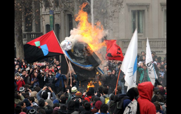 Internacional | Las movilizaciones estudiantiles reúnen a unos 100 mil manifestantes Estudiantes se manifiestan en Chile; hay 102 detenidos Las movilizaciones estudiantiles reúnen a unos 100 mil manifestantes Por: NTX 26 de junio de 2013 - 21:56 hs Estudiantes realizan un paro nacional y una marcha por la educación. EFE / SANTIAGO, CHILE (26/JUN/2013).- Un total de 102 detenidos y cuatro policías heridos reportó la policía chilena, tras los incidentes vividos hoy en la capital chilena en el marco de un paro nacional y una marcha por la educación. Las movilizaciones, según las organizaciones estudiantiles de la enseñanza media y universitarios, reunieron en Santiago a unos 100 mil manifestantes y se desarrollaron en paralelo en las principales ciudades de regiones. Del centenar de detenidos, 52 eran menores de edad, uno fue detenido por robo en una sucursal bancaria y otro por porte de un artefacto incendiario, indicó el parte policial. Los incidentes y enfrentamientos entre encapuchados y carabineros antidisturbios, que se iniciaron en la madrugada de este miércoles 26, se prolongaron hasta horas de esta noche, en las inmediaciones de la Universidad de Santiago y Estación Central. Por la noche se realizaron cacerolazos en la Plaza Baquedano, donde se reunió un millar de personas, y en las plazas Ñuñoa y Brasil, donde concurrieron unos centenares, sin que se produjeran mayores incidentes. Informaciones de la Quinta Región del país indicaron que esta noche en Valparaíso y en Viña del Mar se produjeron barricadas y bloqueos de rutas. Temas América Latina Chile Manifestaciones en el mundo Estudiantes Recibe las últimas noticias en tu e-mail Todo lo que necesitas saber para comenzar tu día Registrarse implica aceptar los Términos y Condiciones