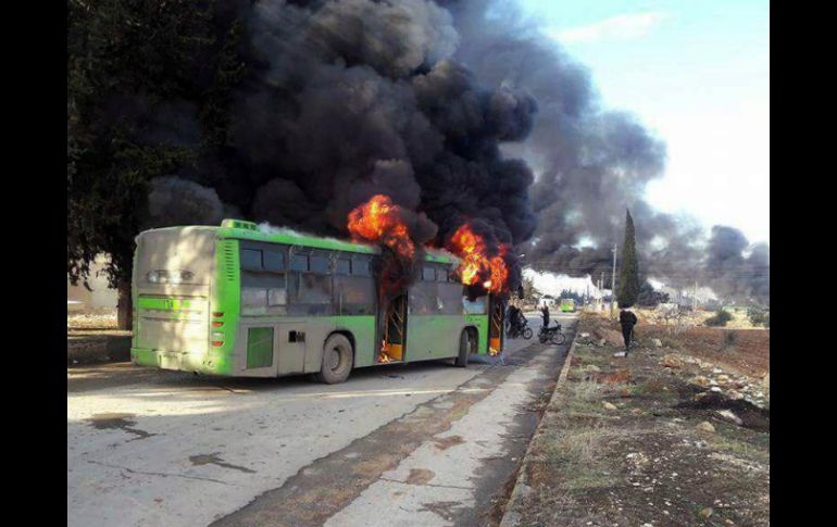 EL CAIRO, EGIPTO (18/DIC/2016).- La quema de seis autobuses destinados a la evacuación de civiles de dos localidades de Siria dejó hoy en el aire el plan para retirar a miles de personas de los barrios rebeldes de la ciudad de Alepo, que quedó suspendido hasta nuevo aviso.La operación de evacuación se reanudó este domingo tras dos días de bloqueo entre los dos bandos, pero volvió a estancarse horas después sin que ningún vehículo pudiera salir de la ciudad con civiles o con milicianos, según informó el Observatorio Sirio de Derechos Humanos.Los autobuses que entraron hoy a Alepo, 15 según la ONG y 25 según la agencia oficial siria SANA, salieron vacíos de la ciudad.El nuevo bloqueo se produjo a raíz del incendio de seis autobuses destinados a la evacuación de Fua y Kefraya, dos poblaciones de mayoría chií que están ubicadas en zonas controladas por las fuerzas aliadas al presidente sirio, Bachar al Asad, en la provincia septentrional de Idleb, y están cercadas por grupos yihadistas.En el incendio falleció el chofer de uno de los autobuses, según el Observatorio Sirio de Derechos Humanos.La agencia SANA atribuyó la quema de autobuses a los grupos terroristas Frente de la Conquista de Levante (antiguo Frente Al Nusra, en su momento filial siria de Al Qaeda) y Libres de Sham.Por su parte, el Observatorio de Derechos Humanos achacó el incendio a la facción radical Yund al Aqsa, que en octubre pasado juró fidelidad al Frente de la Conquista de Levante.La operación de evacuación de los pueblos chiíes estaba prevista para el comienzo de la mañana, pero sufrió retrasos por la acción de estos grupos yihadistas, que impidieron el acceso a la ciudad durante varias horas.Irán, aliado de Al Asad, había condicionado la evacuación de esas dos localidades, donde se esperaba retirar entre tres mil y cuatro mil personas, al reinicio de la operación en Alepo.El director del Observatorio Sirio de Derechos Humanos, Rami Abderrahmán, dijo a EFE que, a raíz del incendio, Irán y el régimen sirio han exigido garantías para la evacuación de los civiles de ambas localidades de mayoría chií.El Ejército Libre Sirio (ELS), una de las principales facciones rebeldes en el este de Alepo, condenó el incendio de los autobuses y, en un comunicado, lo calificó como una "acción individual".Esta facción afirmó que el incendio supone un "crimen" contra la "revolución" siria y se trata de una maniobra "temeraria que puede poner en peligro la vida de al menos 50 mil personas" que permanecen atrapadas en los barrios del este de Alepo.Las personas que fueron evacuadas desde el pasado jueves de Alepo, entre las que se encuentran heridos, insurgentes, sus familiares y otros civiles, han sido trasladadas por carretera a través del corredor de Al Ramusa-Ameriya, que atraviesa el sur de Alepo, con destino Al Rashidin, que se encuentra a cinco kilómetros al oeste de la ciudad.El traslado de los convoyes se realizó bajo supervisión de la Media Luna Roja siria y el Comité Internacional de la Cruz Roja (CICR).El pasado jueves, la Media Luna Roja y la Cruz Roja afirmaron que sacaron a unas 10 mil personas de Alepo, muchas de ellas en condiciones graves, de los distritos sitiados de la que, antes de la guerra, era la mayor ciudad siria.Las labores de evacuación de civiles se interrumpieron en medio de acusaciones cruzadas de acciones de boicot de la operación.El Gobierno sirio acusó a los rebeldes de cortar la carretera que conduce a las poblaciones chiíes y de tomar rehenes, mientras que los insurgentes culparon a las fuerzas de Al Asad de disparar contra los autobuses de civiles.