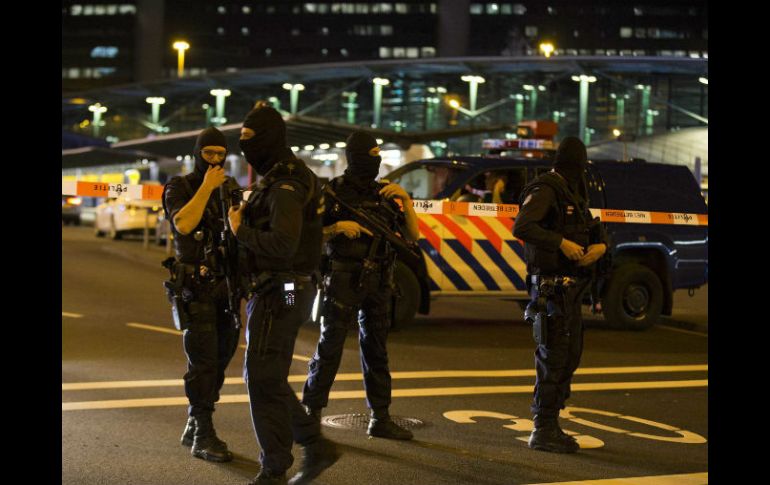 Internacional | La Policía de Holanda desalojó varias zonas del aeródromo tras 'situación sospechosa' Evacuan aeropuerto de Ámsterdam; hay una persona detenida La Policía de Holanda desalojó varias zonas del aeródromo tras una 'situación sospechosa' Por: NTX 12 de abril de 2016 - 16:46 hs Policías militares con pasamontañas y ametralladoras resguardar los accesos y pasillos de la termina aérea de Schiphol. EFE / M. V. Bergen ÁMSTERDAM, HOLANDA (12/ABR/2016).- La Policía de Holanda evacuó esta noche varias zonas del aeropuerto Schiphol de la capital Ámsterdam, luego de reportes sobre una "situación sospechosa". Fuentes policiales citadas por el canal de televisión AT5 informaron que una persona fue detenida y decenas de efectivos acordonaron el inmueble, mientras equipos especiales realizan rastreos. Imágenes publicadas en redes sociales por pasajeros muestran a policías militares con pasamontañas y ametralladoras en los accesos y pasillos de la terminal aérea holandesa. Los vuelos en el importante aeródromo no resultaron muy afectados ante la situación, y los trenes en la estación del aeropuerto se mantuvieron en funcionamiento durante el incidente. En las primeras horas del miércoles, el portavoz de la policía militar, Alfred Ellwanger, en entrevista telefónica que "no se encontraron materiales peligrosos" en el equipaje del sospechoso, y que se levantaron las estrictas medidas de seguridad. Ellwanger dijo que el hombre arrestado permanecía detenido y bajo investigación. No tenía detalles de la identidad del sujeto y aclaró que el arresto ocurrió tras un "reporte de una situación sospechosa", pero no brindó más detalles. Holanda ha estado en alerta desde que ocurrieron los ataques letales al aeropuerto y una estación del metro de Bruselas el mes pasado. Con información de AP Temas Europa Terrorismo Atentados Holanda Lee También ¿Cómo se despliegan los cárteles mexicanos en Australia? Estrategia contra los aranceles Gobierno palestino lamenta ataque "terrorista" a sinagoga en Reino Unido Tres muertos tras ataque a una sinagoga en Inglaterra Recibe las últimas noticias en tu e-mail Todo lo que necesitas saber para comenzar tu día Registrarse implica aceptar los Términos y Condiciones