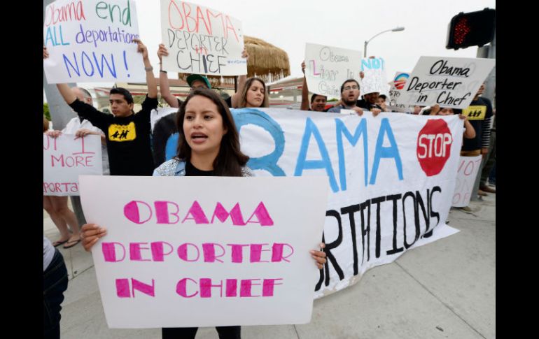 Internacional | Manifestantes urgen a Obama a suspender las deportaciones de indocumentados en EU Exigen a Obama ''ni un deportado más'' Decenas de manifestantes urgen a Barack Obama a suspender las deportaciones de indocumentados en EU Por: NTX 7 de junio de 2013 - 19:57 hs La protesta es opacada por un tiroteo a varias calles del lugar. AFP / LOS ÁNGELES, ESTADOS UNIDOS (07/JUN/2013).- Con la consigna de "Ni un deportado más", decenas de manifestantes urgieron hoy al presidente estadounidense Barack Obama a suspender las deportaciones de indocumentados en Estados Unidos. La protesta, que incluyó acciones de desobediencia civil por lo que se encadenaron unos a otros para bloquear la vialidad, fue opacada por un tiroteo a varias calles de ahí en un colegio comunitario de Santa Mónica. Obama estuvo aquí por más de tres horas al acudir a un evento privado de recaudación de fondos en una residencia de un ejecutivo de Hollywood en Santa Monica. Mientras se desarrollaba el almuerzo, varia decenas de manifestantes se apostaron en una calle cercana con un enorme cartel con la imagen del presidente Obama y la leyenda "Deportador en jefe". Estos exigían al mandatario Obama emitir una orden ejecutiva para suspender las deportaciones de indocumentados, que lo ubican como el presidente con un número récord de deportados con un millón 700 mil en su gestión. Los activistas se apostaron en la calle 26 y el bulevar San Vicente, en Santa Mónica, y eran resguardados por agentes de seguridad que les impidieron acercarse a la llegada y acceso de la comitiva presidencial. Más tarde, el presidente abandonó el lugar para viajar a Palm Springs, donde se reunirá con el presidente de China, Xi Jinping -quien cumple una visita en Estados Unidos-, mientras que en el sitio permanecieron algunos manifestantes. Temas Norte América Estados Unidos Barack Obama Inmigrantes Recibe las últimas noticias en tu e-mail Todo lo que necesitas saber para comenzar tu día Registrarse implica aceptar los Términos y Condiciones