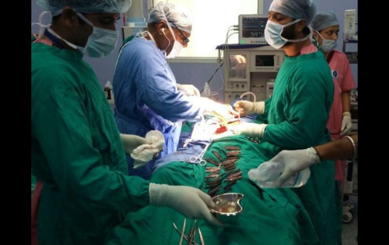 NUEVA DELHI, INDIA (23/AGO/2016).- Médicos del norte de India extrajeron quirúrgicamente 40 cuchillos del estómago de un hombre que los había tragado en los dos últimos meses.El paciente, de 42 años, se recupera en un hospital del estado de Punjab tras la operación del pasado viernes en la que los doctores le extrajeron los cuchillos, algunos plegados y otros con filos de hasta 18 centímetros (siete pulgadas).Jatinder Malhotra, un médico que estuvo presente en la intervención de cinco horas, explicó el martes que al parecer el hombre, agente de policía, sufriría un problema psiquiátrico por el que está recibiendo atención.El paciente no pudo explicar su comportamiento, agregó Malhotra, quien dijo que nunca vio un caso similar.