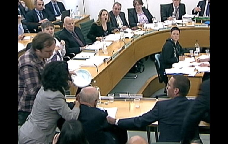 Internacional | Una trifulca impidió que el atacante lograra su cometido Fallida agresión contra Rupert Murdoch suspende audiencia por instantes Una trifulca impidió que el atacante lograra su cometido Por: EFE 19 de julio de 2011 - 10:23 hs Los Murdoch ofrecen disculpas a víctimas del espionaje VEA TRANSMISIÓN EN VIVO (En inglés) LONDRES, INGLATERRA (19/JUL/2011).- La comparecencia de Rupert Murdoch y su hijo James ante una comisión del Parlamento británico por las escuchas ilegales fue suspendida hoy durante unos 15 minutos después de que un espectador tratase de abalanzarse sobre el magnate. Según se vio en la cadena pública BBC, un hombre con camisa a cuadros fue detenido por la Policía tras el incidente, en el que al parecer trató de lanzar un plato con espuma de afeitar. La esposa del multimillonario, Wendi, fue la que pudo bloquear el ataque a su marido, dando un manotazo al agresor, para intentar evitar el impacto, mientras que James Murdoch también se levantó sobresaltado por el incidente. Versiones de algunos medios ingleses coinciden en señalar al comediante, Jonathan May-Bowles como el responsable de la agresión. El magnate no habría resultado herido por la agresión durante su comparecencia. Un testigo declaró a la agencia AFP haber visto como el agresor se dirigía hacia el magnate con un bolsa verde en la mano. Un cuarto de hora después del incidente, que causó revuelo en la sala, se retomó la larga comparecencia, en la que los Murdoch deben explicar hasta qué punto conocían la practica de las escuchas ilegales que se realizaban en sus periódicos británicos. Temas Europa Inglaterra Espionaje Medios de comunicación Lee También Príncipe Andrés renuncia a todos sus títulos reales ¿Cómo se despliegan los cárteles mexicanos en Australia? Los verdaderos enemigos de Sheinbaum La labor continúa Recibe las últimas noticias en tu e-mail Todo lo que necesitas saber para comenzar tu día Registrarse implica aceptar los Términos y Condiciones