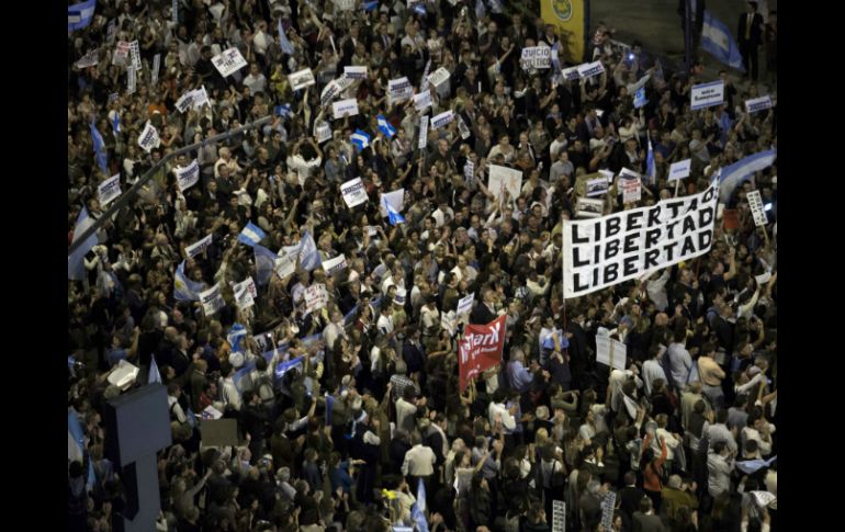 Internacional | El Gobierno de la presidenta argentina volvió a ser blanco de protestas en Buenos Aires Fernández enfrenta masivas protestas en año electoral clave Las razones de los manifestantes para volcarse a las calles fueron el rechazo a las restricciones cambiarias , a la reforma judicial, a la inflación y corrupción Por: EFE 18 de abril de 2013 - 19:53 hs En las calles, el malestar frente al Gobierno de Fernández se expresó con pancartas y banderas argentinas. AP / BUENOS AIRES, ARGENTINA (18/ABRIL/2013).- El Gobierno de la presidenta argentina, Cristina Fernández, volvió hoy a ser blanco de masivas protestas en Buenos Aires y varias ciudades del interior del país convocadas a través de las redes sociales y con el apoyo explícito de sectores de la oposición en un año electoral clave. Como en la multitudinaria protesta del ocho de noviembre pasado, nuevamente las razones esgrimidas por los miles de manifestantes que se volcaron a las calles fueron múltiples, desde el rechazo a las restricciones cambiarias y a la reforma judicial que se aprobó hoy en el Senado hasta reclamos por la inflación y en contra de la corrupción. También como en noviembre, las redes sociales volvieron a tener un fuerte protagonismo a la hora de convocar a la protesta y de reflejar el clima de indignación que domina a muchos argentinos. En las calles, el malestar frente al Gobierno de Fernández se expresó con pancartas y banderas argentinas, algunas de ellas gigantes, y también con el batir de cacerolas. "Los vamos a juzgar", "respeto a la prensa libre", "juicio político a CFK", "sin justicia no hay futuro", "defendamos la democracia", fueron algunas de las consignas que se vieron en las calles. "Es mi deber como ciudadano defender a la república y todas las libertades. Este Gobierno no respeta a los ciudadanos y hay que manifestarse hasta que entiendan que hay que respetar la pluralidad", dijo Julio, de 50 años, vecino del barro porteño de Recoleta, para quien la protesta ha hecho "despertar a una oposición que estaba dormida". Lidia, de 37 años, de la localidad bonaerense de Avellaneda, dijo que protestaba contra "la inseguridad y la inflación" porque entiende que el Gobierno "no está haciendo nada" y que los ciudadanos "no pueden quedarse con los brazos cruzados". "Quiero hacer lo que pueda para contribuir a que las cosas cambien. Estamos muy mal. No tenemos justicia. Vamos cada vez peor. Y el Gobierno sabe que no tiene razón", dijo Graciela, de 75 años, vecina del barrio de Floresta. En Buenos Aires, la protesta se inició en los barrios y, desde allí, muchos de los manifestantes marcharon hacia el emblemático Obelisco, en el centro de la capital, hacia la Plaza de Mayo, frente a la sede del Ejecutivo. A mitad de la movilización, cuando el Senado aprobó la reforma judicial, miles de manifestantes decidieron llevar la protesta también a las puertas del Parlamento. También hubo fuertes protestas en distintas ciudades del interior, como Rosario, Córdoba, Mendoza, Bariloche, Santa Fe, Tucumán, La Plata y en la localidad bonaerense de Olivos, cerca de la residencia presidencial. La novedad de la protesta contra el Gobierno de Cristina Fernández fue ésta vez el apoyo activo que diversos dirigentes de la oposición dieron a las movilizaciones. En las calles de Buenos Aires puede verse a manifestantes identificados con los colores y las consignas de Propuesta Republicana (Pro), uno de las principales fuerzas opositoras, lideradas por el alcalde de Buenos Aires, Mauricio Macri, quien ha convocado a la marcha a través de Twitter pero que no participará de la movilización, según confirmaron fuentes oficiales. Otros dirigentes de oposición, como la diputada Patricia Bullrich, el dirigente sindical Gerónimo Venegas, la líder de Afirmación para una República Igualitaria Elisa Carrió y el diputado del Pro Federico Pinedo, se mostraron entre la gente, protestando activamente. "Hay un reclamo de la población, de que podemos vivir mejor y esto se logra con honestidad y participación de la ciudadanía. Hay muchísimas expresiones de lo que piensa la gente y para nosotros es muy importante leer lo que está diciendo la gente", dijo en la marcha el líder del Frente Amplio Progresista, el socialista Hermes Binner. Por su parte, el diputado radical Ricardo Alfonsín, también presente en la movilización, dijo que la presencia de la oposición en la protesta es "producto de la gran preocupación por la degradación de valores fundamentales de la democracia y la república". Cristina Fernández, que en la tarde de hoy partió rumbo a Lima para asistir a una cumbre extraordinaria de la Unión de Naciones Suramericanas, inició su gestión en 2007 y fue reelegida para un segundo mandato en 2011 con el 54 por ciento de los votos, pero su imagen positiva ha ido desde entonces en declive, según diversas encuestadoras privadas. "Al que le gusta protestar, me parece bien, pero sería bueno que además todos podamos ayudar", dijo hoy la mandataria en un acto en la sede del Ejecutivo, donde no hizo alusión directa a la convocatoria del "18A". Argentina celebrará elecciones en octubre próximo, cuando el oficialismo pondrá en juego su mayoría en el Parlamento, comicios clave de cara a las presidenciales de 2015. Temas América Latina Argentina Cristina Fernández Lee También México vs Argentina: Estas son las posibles alineaciones para el Mundial Sub-20 México busca frenar el paso perfecto de Argentina en Mundial Sub-20 Dónde ver EN VIVO el México vs Argentina por el Mundial Sub-20 José Jerí asume como presidente de Perú Recibe las últimas noticias en tu e-mail Todo lo que necesitas saber para comenzar tu día Registrarse implica aceptar los Términos y Condiciones
