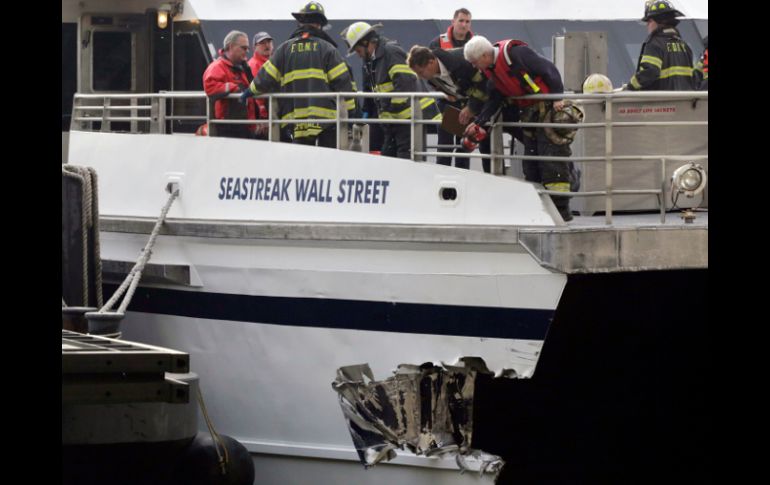 Internacional | El transbordador aparentemente llegó con más velocidad de lo debido Ferry choca contra muelle en Nueva York; al menos 57 heridos El transbordador aparentemente llegó con más velocidad de lo debido y chocó contra el muelle número 11 del puerto del extremo sur de la isla de Manhattan Por: EFE 9 de enero de 2013 - 09:42 hs Las autoridades indican que se registró un total de 57 heridos, uno de ellos de gravedad, y 21 con problemas de menor entidad. AP / NUEVA YORK, ESTADOS UNIDOS (09/ENE/2013).- Un total de 57 personas resultaron heridas hoy, una de ellas de gravedad, en la colisión de un transbordador contra un muelle del sur de la isla de Manhattan, en Nueva York, según informaron las autoridades. El accidente ocurrió justo antes de las 09.00 hora local (14.00 GMT) cuando el ferry de alta velocidad Seastreak cargado de personas que acudían a trabajar llegó aparentemente con más velocidad de la debida y chocó contra el muelle número 11 del puerto del extremo sur de la isla de Manhattan. Las imágenes de televisión mostraban a personal de los servicios de rescate evacuando heridos desde el buque en camillas cubiertas con mantas y depositándolos en el muelle a la espera de la llegada de las ambulancias, en las que fueron evacuados tras algunos minutos de espera. Las autoridades indicaron que se registró un total de 57 heridos, uno de ellos de gravedad, y 21 con problemas de menor entidad. El herido de mayor gravedad sufrió "lesiones serias" en la cabeza y está siendo operado en el hospital de la Universidad Cornell. El transbordador es un catamarán de 43 metros de eslora y presenta un boquete en su casco de estribor como consecuencia de la colisión, según se puede apreciar en las tomas realizadas desde los helicópteros de las cadenas de televisión. La nave realiza el servicio llamado "Wall Street" entre Highlands (Nueva Jersey) y el sur de Manhattan (un trayecto de 40 minutos) y, aunque tiene una capacidad máxima de 400 personas, llevaba a bordo 343 pasajeros y 5 tripulantes. "Hubo un impacto tremendo y todo el mundo salió volando hacia adelante", explicó una pasajera a la cadena de televisión ABC. Mientras tanto, el Consejo Nacional de Seguridad en el Transporte (NTSB) envió ya un grupo de técnicos para investigar las causas del accidente. Los transbordadores realizan un tráfico constante en la región de Nueva York, ya que se trata de una zona costera y con islas, y el tránsito es especialmente intenso en las horas de entrada y salida del trabajo. En octubre de 2003, 10 personas murieron y otras 34 resultaron heridas cuando un ferry procedente de Staten Island colisionó con un muelle de la parte baja de Manhattan. Temas Norte América Accidentes en el mundo Estados Unidos Nueva York Lee También China amenaza con "pelear hasta el final" si EU mantiene los nuevos aranceles Estos son los estados en alerta por posible propagación de dengue Despliegan operativo tras bloqueos en Chiapas Reportan carambola en autopista a Morelia Recibe las últimas noticias en tu e-mail Todo lo que necesitas saber para comenzar tu día Registrarse implica aceptar los Términos y Condiciones