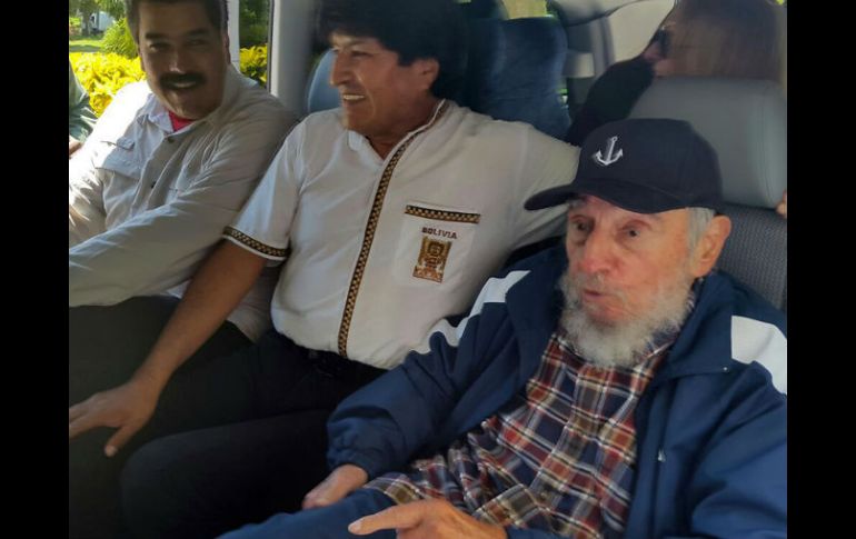 Internacional | El líder cubano es sorprendido por los presidentes de Venezuela y Bolivia en La Habana Fidel Castro festeja su cumpleaños junto a Maduro y Morales El líder cubano es sorprendido por los presidentes de Venezuela y Bolivia en La Habana Por: EFE 13 de agosto de 2015 - 15:56 hs LA PAZ, BOLIVIA (13/AGO/2015).- El líder cubano Fidel Castro y el presidente de Venezuela, Nicolás Maduro, sorprendieron al mandatario boliviano, Evo Morales, al visitarle en el hotel donde se hospeda en La Habana, informó la agencia estatal boliviana ABI. Castro y Maduro llegaron en una vagoneta hasta el hotel La Laguna, donde se hospeda Morales, que llegó a Cuba de madrugada para celebrar los 89 años de Castro, señaló la fuente. "Para Bolivia todo el cariño del mundo y mi admiración", dijo Fidel Castro, según la agencia ABI. Morales tenía previsto visitar a Castro en su casa, por lo que le sorprendió que el líder cubano fuera a buscarlo hasta su hotel. La presidencia de Palacio de La Paz también difundió fotografías a medios bolivianos del encuentro de los líderes políticos. "Vengo a compartir, a acompañar a nuestro hermano mayor, Fidel Castro, en su cumpleaños. Le admiro mucho, le quiero mucho, aprendí mucho de él", declaró previamente Morales al llegar a La Habana. El mandatario boliviano tiene previsto asistir este jueves en La Habana a un acto en el que hará una donación de equipos de computación a la escuela primaria "Estado Plurinacional de Bolivia", según informó la cancillería de la isla. Su anterior visita a la isla fue en diciembre de 2014, cuando asistió a la XIII Cumbre de la ALBA en La Habana, y mantuvo un encuentro con el presidente cubano, Raúl Castro. Temas América Latina Cuba Fidel Castro Evo Morales Nicolás Maduro Lee También Sociales: Subasta de Arte, obras a beneficio de Helen Keller Sociales: El Eco de lo Invisible, una exposición fotográfica sobre las huellas ocultas del cáncer Hay mejoría, pero el futuro es “incierto” Sociales: ¡Doble festejo, doble diversión! La magia de Isabella y la velocidad de Rodrigo Recibe las últimas noticias en tu e-mail Todo lo que necesitas saber para comenzar tu día Registrarse implica aceptar los Términos y Condiciones