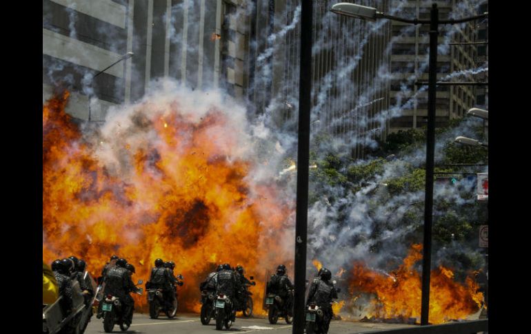 CARACAS, VENEZUELA (30/JUL/2017).- Un artefacto explosivo fue detonado este domingo en medio de enfrentamientos entre policías y manifestantes opositores en el este de Caracas, dejando siete uniformados heridos, informó la Fiscalía venezolana.La explosión se produjo en una avenida del acomodado sector de Altamira, constató la Afp, donde decenas de opositores protestaban contra la elección este domingo de la Asamblea Constituyente convocada por el presidente Nicolás Maduro.El Ministerio Público, que aclaró que los afectados son policías y no militares, acudió al centro de salud donde se encuentran para verificar su condición."Resultaron heridos siete PNB (Policía Nacional Bolivariana) y fueron incineradas cuatro motocicletas", detalló el organismo en su cuenta de Twitter.Mientras un par de policías trataban de apagar el fuego en sus pantalones y dos de sus motocicletas estaban en llamas por la explosión, algunos uniformados arrojaron otras motos de civiles a las llamas, observaron periodistas de la Afp.Este domingo, mientras se elige la Asamblea Constituyente que redactará una nueva Carta Magna, se registran protestas opositoras en Caracas y varias ciudades del país en rechazo al proceso.Las manifestaciones, que han degenerado en violentos disturbios, son dispersadas con gases lacrimógenos y perdigones por los cuerpos de seguridad.En La Grita, en el occidental departamento de Táchira, fronterizo con Colombia, un militar falleció este domingo de un disparo durante otra protesta, informó la Fiscalía.De acuerdo con el Ministerio Público, al menos una decena de muertos deja la violencia que estalló entre sábado y domingo en Venezuela en el marco de la votación de la Constituyente, que la oposición considera un "fraude" para perpetuar a Maduro en el poder.