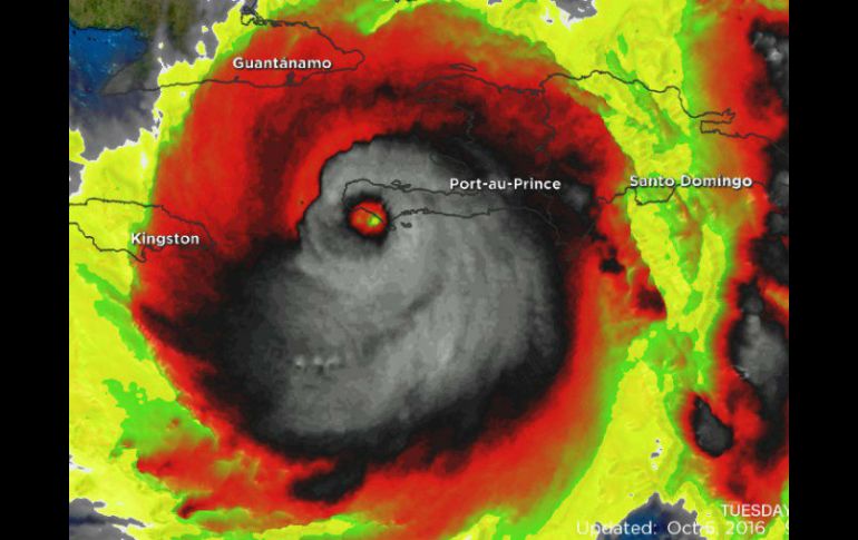 MIAMI, ESTADOS UNIDOS (05/OCT/2016).- El huracán “Matthew”, que tras su paso por Haití y Cuba con categoría cuatro descendió este miércoles a categoría tres, ha sido catalogado como una tormenta monstruosa, y ahora una imagen en donde semeja un cráneo se ha vuelto viral en internet. La imagen satelital fue publicada el martes por el meteorólogo Stu Ostro de The Weather Channel, cuando el huracán tocó tierra en Haití. Se añadieron colores a las imágenes para ayudar a los meteorólogos a encontrar las partes más intensas del fenómeno meteorológico. La imagen muestra el huracán a través de una cámara de visión infrarroja que fue ajustada para mostrarlo en colores que destacan su forma, lo que permitió que pudieran apreciarse unos dientes como los del personaje del cómic "Ghost Rider", o también parecidos a los del "Grinch". Paul Meyer, científico atmosférico de la Oficina de Ciencias de la Tierra de la NASA, dijo a CNN que los "dientes" del cráneo son en realidad frías nubes convectivas. “Matthew” es el huracán más poderoso que ha atravesado el Caribe en la última década y hasta el momento ya dejó 11 muertes a su paso por Haití, Cuba, República Dominicana y San Vicente.