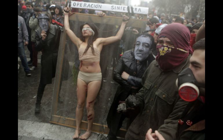 Internacional | Enfrentamientos contra policía marcan final de polémico homenaje Fracasa homenaje a Pinochet en Chile Enfrentamientos contra policía marcan final de polémico homenaje Por: NTX 10 de junio de 2012 - 17:14 hs Un grupo de actores 'torura' a una mujer durante una protesta contra el estreno de un documental sobre Pinochet. AP / SANTIAGO, CHILE (10/JUN/2012).- Con enfrentamientos entre manifestantes de izquierda y la policía chilena finalizó hoy un acto de homenaje a Augusto Pinochet realizado por cerca de un millar de partidarios del fallecido exdictador en un teatro capitalino. Mientras cerca de mil personas participaban del polémico acto en el Teatro Caupolicán, decenas de manifestantes se enfrentaron a efectivos de la militarizada policía de Carabineros en las afueras del recinto, ubicado en pleno centro de Santiago. Los incidentes entre detractores del ex gobernante de facto (1973-1990) y la fuerza pública dejaron decenas de destrozos en el mobiliario público, así como policías y civiles heridos. Los hechos de violencia se produjeron principalmente en torno a los tres anillos de seguridad dispuestos por Carabineros para impedir el choque entre simpatizantes de Pinochet y organizaciones sociales de izquierda que llamaron a protestar en contra del homenaje. En dichos puntos, manifestantes con sus rostros cubiertos bloquearon las calles con barricadas y lanzaron piedras en contra de los agentes de Fuerzas Especiales de Carabineros, que utilizaron carros lanza-agua y gases lacrimógenos para dispersar a la turba. Al interior del Caupolicán, en tanto, unas mil 200 personas participaron del estreno del documental "Pinochet", que resalta la figura del exdictador, con un discurso previo a cargo de Augusto Pinochet Molina, nieto del fallecido general de Ejército. "Quiero agradecer a Dios y a todos los chilenos. El año 73 este país dio un grito fuerte y ese grito fue 'libertad'", declaró el nieto de Pinochet, al justificar la asonada golpista que encabezó su abuelo e instauró una férrea dictadura de 17 años. "Eso fue liderado por mi abuelo, pero todos ustedes ayudaron. Luchen siempre por la libertad, nunca la pierdan", enfatizó Pinochet Molina, dirigiéndose a los presentes en el acto de homenaje. La ceremonia fue interrumpida cada cierto tiempo por gritos de apoyo a Pinochet y vítores exigiendo "libertad para (el represor Alvaro) Corbalán" y otros militares condenados por violaciones a los derechos humanos durante el régimen militar. Al inicio de la ceremonia, la vicepresidenta de "Equal Justice", Patrice Walcot, leyó una carta del cubano residente en Estados Unidos y presidente del festival de Miami que premió al video sobre la obra de Augusto Pinochet en Chile, Eladio José Armesto. "Si Chile es lo que es, es gracias a Pinochet", señaló Armesto en la misiva que dirigió a los presentes al homenaje y en la que pidió "justicia y libertad" para todos los ex uniformados encarcelados por violaciones a los derechos humanos. El acto de homenaje fue organizado por la "Corporación 11 de septiembre", cuyo nombre hace alusión a la fecha del golpe de Estado que en 1973 derrocó al gobierno de Salvador Allende y que agrupa a militares retirados y civiles partidarios del exdictador. Temas América Latina Chile Augusto Pinochet Lee También México busca frenar el paso perfecto de Argentina en Mundial Sub-20 Dónde ver EN VIVO el México vs Argentina por el Mundial Sub-20 La actualidad de Diego Ochoa, formado en Chivas y destacado en el Mundial Sub-20 José Jerí asume como presidente de Perú Recibe las últimas noticias en tu e-mail Todo lo que necesitas saber para comenzar tu día Registrarse implica aceptar los Términos y Condiciones