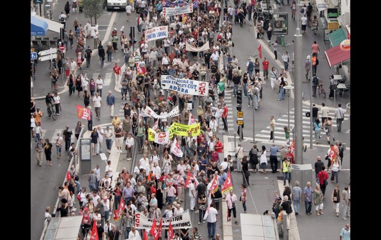 Internacional | Marchas contra Nicolas Sarkozy Franceses rechazan elevar la edad de jubilación Inconformes defendieron en las calles la edad de retiro, de 60 años, una conquista social de la década de 1980 Por: AP 8 de septiembre de 2010 - 01:27 hs Manifestantes protestan en Niza, Francia, contra la reforma del sistema de pensiones. EFE / PARÍS, FRANCIA (08/SEP/2010).- Más de un millón de personas, según el Gobierno, y 2.5 millones, según los sindicatos, tomaron las calles de Francia en una nueva jornada de protestas —que prometen seguir hoy— y huelgas contra el proyecto del presidente Nicolas Sarkozy de elevar la edad mínima de jubilación. El Gobierno cifró la participación en todo el país en un millón 120 mil personas, en tanto que los sindicatos la situaban en más del doble: 2.5 millones según la Confederación Francesa Democrática del Trabajo (CFDT), 2.7 millones según la Confederación General de Trabajadores (CGT), la principal central gremial del país. Ocho sindicatos convocaron a más de 200 manifestaciones en todo el país para oponerse a un proyecto que prevé, a partir de 2018, elevar de 60 a 62 años la edad mínima legal para poder jubilarse y de 65 a 67 para hacerlo con una pensión completa. Banderas y globos multicolores de los gremios salpicaban las columnas de manifestantes dispuestos a defender la jubilación a los 60 años, conquista emblemática de la presidencia del socialista Francois Mitterrand (1981-1995) y que Sarkozy comenzó replantear por supuesta insostenibilidad. El actual primer ministro francés, Francois Fillon, sostiene que la adopción de la reforma “no es una opción forzada antes de 2012, sino una decisión valiente”, al subrayar la necesidad de elevar la edad de la jubilación a los 62 años ya que “desde 1950 se han ganado 15 años de esperanza de vida”. En junio de 2007, a un mes de asumir como presidente, Sarkozy planteó las primeras reformas al mercado laboral, las que flexibilizaron la jornada laboral legal de 35 horas, principal legado del último Gobierno de izquierda francés, de Mitterrand. Esta reforma buscó incrementar directamente el poder adquisitivo de los hogares franceses para estimular el consumo y la demanda, e incentivar el empleo. A lo anterior se suman las propuestas de reforma al sistema de pensiones y protección social impulsadas en noviembre pasado, que incluían la reforma a los sistemas de pensiones privilegiadas que beneficiaban a algunos grupos de trabajadores públicos, que les permitía jubilar a los 37.5 años, a diferencia del resto de los trabajadores franceses que pueden hacerlo a los cuarenta años de servicio. Esto último desató una huelga de los principales sindicatos de las empresas de transporte público y del sector de energía que cesaron después de nueve días. Francia, con más de 15 millones de jubilados, es uno de los países europeos donde la edad mínima para tener derecho a jubilarse es más baja. Por lo pronto, ayer comenzó el debate de la reforma de pensiones en el Parlamento —que coincide con las marchas—, y el Gobierno de Sarkozy, para quien esta reforma es una “prioridad absoluta” de los 18 meses de mandato que le quedan, cuenta con que su adopción parlamentaria sea a fines de octubre, así como la introducción de una suerte de seguro de salud que se tratará a inicios de 2011, año en que el mandatario galo deberá decidir si se presentará para un segundo mandato. Las huelgas contra medidas de austeridad gubernamentales que causaron caos en Francia y también en Londres, podrían ser un preludio de nuevas protestas en Europa, desde España hasta la República Checa. Un paro de los trabajadores del metro de Londres afectó a millones de viajeros que utilizan diariamente ese medio de transporte. Según la Cámara de Comercio de Londres, un día de cierre del metro significa 73 millones dólares en pérdidas para la economía de la capital. Temas Europa Francia Manifestaciones en el mundo Nicolás Sarkozy Lee También Sociales: El Informador inicia una nueva etapa con la moderna imprenta "Doña Stella" Lo peor es que Claudia también tiene sus dudas Sobrevivientes de tortura inician huelga de hambre El bloque negro y la crisis del espacio público Recibe las últimas noticias en tu e-mail Todo lo que necesitas saber para comenzar tu día Registrarse implica aceptar los Términos y Condiciones