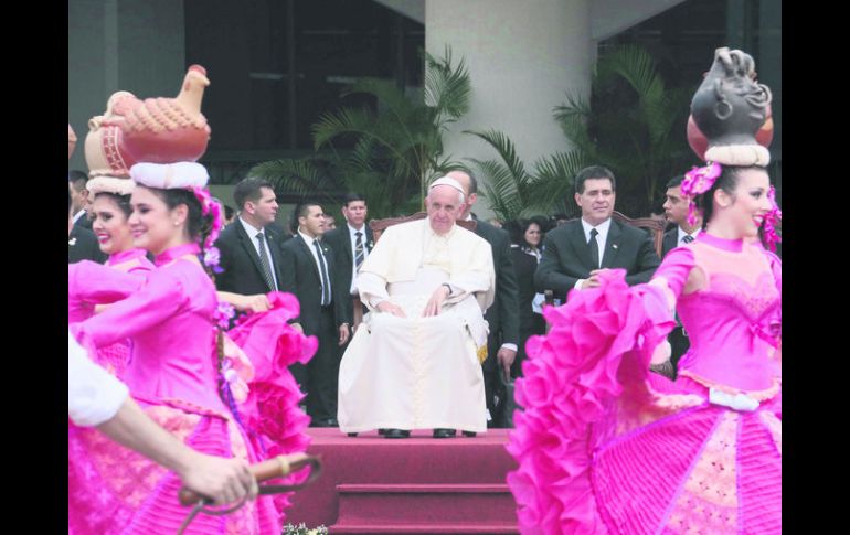 Internacional | El Pontífice visita la cárcel del Buen Pastor, en Asunción, Paraguay Francisco detiene papamóvil para escuchar canto de reclusas Las '50 voces de esperanza', el nombre del grupo de internas, dieron la bienvenida al Papa con una canción Por: EFE 10 de julio de 2015 - 23:05 hs El Papa, acompañado del presidente Horacio Cartes, observa a bailarines, en el aeropuerto Silvio Pettirossi. EFE / ASUNCIÓN, PARAGUAY (11/JUL/2015).- Francisco detuvo el papamóvil para escuchar la canción que le dedicaron un grupo de reclusas de la cárcel de mujeres del Buen Pastor, en Asunción, quienes le esperaban fuera de la penitenciaria para darle la bienvenida, tras su llegada a Paraguay procedente de Bolivia. Las “50 voces de esperanza”, el nombre del grupo de internas, dieron la bienvenida al Papa con una canción y subidas sobre una tarima en ese punto de la capital paraguaya, uno de los más concurridos desde la llegada del Pontífice minutos antes al Aeropuerto de Asunción. Tras escuchar y bendecir a las reclusas, Francisco volvió a subir al papamóvil y se dirigió a la Nunciatura, donde descansó un tiempo. Las internas lloraron porque habían solicitado que el Pontífice entrara y las bendijera. Desde el Aeropuerto de Asunción, donde llegó procedente de Bolivia, Francisco hizo 13 kilómetros sobre el papamóvil, un recorrido que estuvo plagado de miles de personas que tomaron las calles y formaron un cordón humano para saludarle. A su llegada fue recibido por el presidente paraguayo, Horacio Cartes, con quien se entrevistó en el Palacio de López, la sede presidencial, después de su breve reposo en la Nunciatura. La agenda del Papa se reinicia hoy en el Santuario de Caacupé, a 50 kilómetros de Asunción y capital mariana de Paraguay, donde oficiará una misa. También acudirá a un acto religioso en la Catedral, en el Centro de Asunción, donde antes recibirá las Llaves de la Ciudad de manos del intendente, Arnaldo Samaniego. Mañana visitará el Bañado Norte, uno de los barrios pobres de Asunción colindantes con el Río Paraguay, y luego presidirá una misa en Ñu Guasú, el parque más grande del Gran Asunción, uno de sus últimos actos antes de cerrar su estancia en el país suramericano. Es el segundo papa que visita en Paraguay después de Juan Pablo II, quien estuvo en 1988. SABER MÁSEnvía saludo a Cristina Fernández El Papa Francisco envió un saludo a la presidenta argentina, Cristina Fernández, al sobrevolar su “amada patria” durante el vuelo que lo trasladó de Bolivia a Paraguay. “Al sobrevolar la amada patria argentina para dar comienzo a mi visita pastoral a Paraguay, me alegra enviar un cordial saludo a vuestra excelencia, expresando mi cercanía y afecto a esta querida nación”, escribió el Pontífice en un telegrama difundido por la Agencia Informativa Católica Argentina. Temas América Latina Paraguay Papa Francisco Recibe las últimas noticias en tu e-mail Todo lo que necesitas saber para comenzar tu día Registrarse implica aceptar los Términos y Condiciones