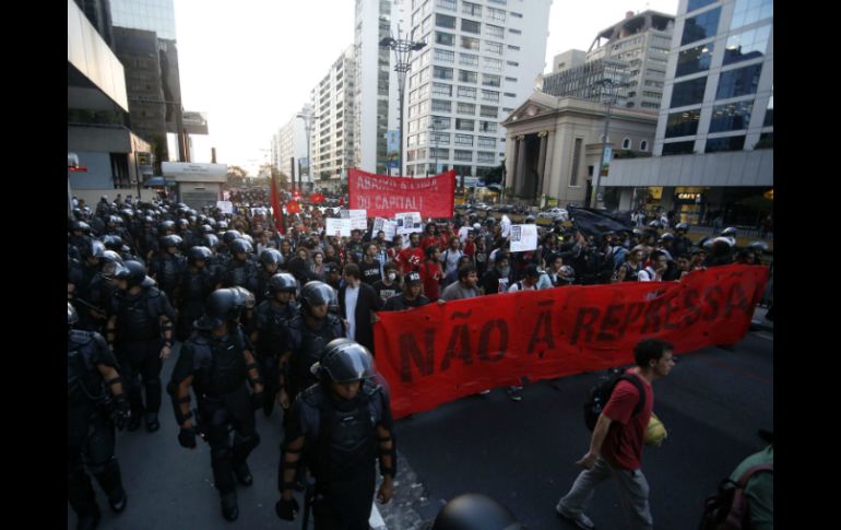 Internacional | Reportan que al menos una persona fue detenida tras la manifestación Fuerte operativo policial vigila protesta contra Mundial en Brasil Reportan que al menos una persona fue detenida tras la manifestación Por: EFE 23 de junio de 2014 - 18:14 hs La policía militarizada vigila la movilización de al menos 200 personas. AFP / SAO PAULO, BRASIL (23/JUN/2014).- Un pequeño grupo de manifestantes se concentró hoy en Sao Paulo para protestar contra el Mundial Brasil 2014 y la represión policial en un acto que estuvo marcado por una gran presencia de agentes en la mayor ciudad brasileña. Según la Policía Militarizada, unas 200 personas, incluidos periodistas, se concentraron en la Avenida Paulista, una de las vías más importantes de Sao Paulo, tras ser convocados en las redes sociales bajo el lema "No va a haber Copa, van a haber protestas". La protesta coincidió con el partido en el que Brasil ganó 4-1 a Camerún en la última jornada de la fase de grupos del Mundial. Los manifestantes protestan contra la supuesta represión policial llevada a cabo por los agentes durante la manifestación realizada el 12 de junio pasado, horas antes del partido inaugural del Mundial. En dicha ocasión, al menos siete personas, entre ellas varios periodistas, resultaron heridas en los enfrentamientos registrados entre la policía y manifestantes. A pesar del bajo número de manifestantes en la protesta de este lunes, una gran número de policías del Batallón de Choque de la Policía Militar cercó la concentración, que de momento transcurre de forma pacífica. Al menos una persona fue detenida, aunque se desconocen los motivos. La estrategia de la policía es diferente a la empleada el pasado viernes en una manifestación convocada por el Movimiento Passe Livre para exigir la gratuidad del transporte y que acabó en actos de vandalismo. En la ocasión, algunos manifestantes vestidos de negro arremetieron contra varias sucursales bancarias y un concesionario de coches de lujo, pero la policía tan sólo llegó después de los incidentes. Temas América Latina Brasil Manifestaciones en el mundo Mundial Brasil 2014 Recibe las últimas noticias en tu e-mail Todo lo que necesitas saber para comenzar tu día Registrarse implica aceptar los Términos y Condiciones