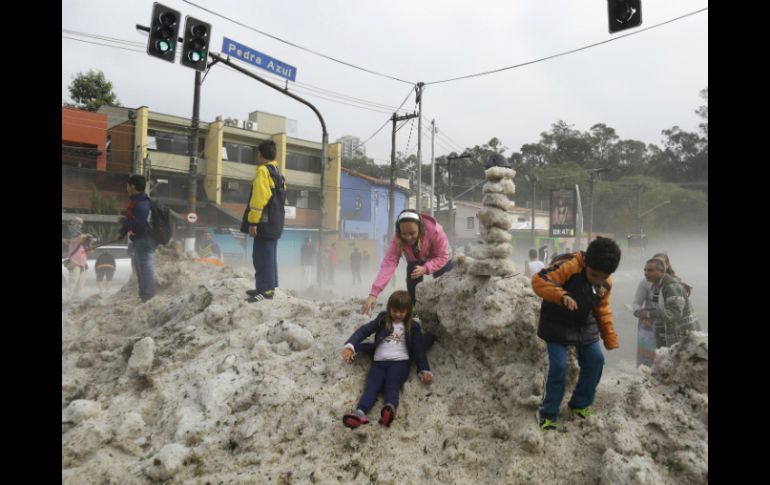 Internacional | La tormenta deja vehículos varados en algunos vecindarios Fuerte tormenta de granizo sorprende a Sao Paulo La tormenta deja vehículos varados en algunos vecindarios Por: AP 19 de mayo de 2014 - 15:36 hs Niños juegan en una pila de hielo en las calles de Sao Paulo. AP / SAO PAULO, BRASIL (19/MAY/2014).- Una tormenta dejó caer granizo de tamaño de canicas en la ciudad de Sao Paulo, dejando algunas calles inundadas o cubiertas de blanco en la ciudad más poblada de Brasil. El Centro de Manejo de Emergencias informó el lunes que la tormenta, que causó 10 centímetros de precipitación pluvial, interrumpió una sequía que causó históricos bajos niveles en las principales presas que abastecen a Sao Paulo. Los habitantes se maravillaban por los montones de hielo que decoraban sus patios desde muy temprano el lunes. Algunos dijeron a la prensa local que sus hijos nunca habían visto granizar ni jugado con el hielo antes de la tormenta del domingo. Mucha gente en Sao Paulo trataba de mantener el equilibrio sobre el hielo y la tormenta dejó vehículos varados en algunos vecindarios. Temas América Latina Brasil Tormentas Lee También Lluvias en CDMX: Pronóstico de lluvia hoy, 9 de octubre, a esta hora Pronóstico de lluvia hoy, 8 de octubre, a esta HORA en CDMX Pronóstico de lluvia hoy, 7 de octubre, a esta HORA en CDMX Kevin Álvarez busca aprovechar su oportunidad con la Selección Recibe las últimas noticias en tu e-mail Todo lo que necesitas saber para comenzar tu día Registrarse implica aceptar los Términos y Condiciones