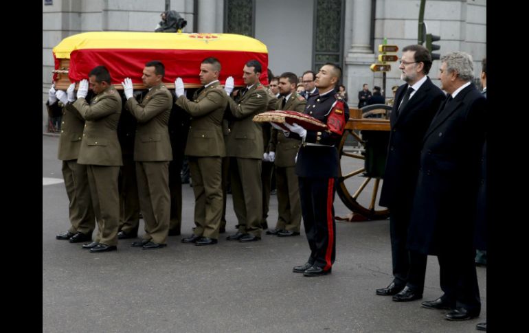 Internacional | Sus restos serán enterrados en la catedral de Ávila Funeral de ex presidente Suárez concluye con cortejo fúnebre La familia, junto al presidente del gobierno español, ministros, representantes de altas instituciones del Estado y clase política acompañaron el féretro Por: NTX 25 de marzo de 2014 - 09:31 hs MADRID, ESPAÑA (25/MAR/2014).- Con un cortejo fúnebre que recorrió desde el Congreso de los Diputados hasta la plaza de Cibeles, concluyó hoy aquí el funeral del ex presidente del gobierno español, Adolfo Suárez, cuyos restos serán enterrados en la catedral de Ávila. La capilla ardiente se cerró este martes tras 24 horas en el Salón de los Pasos perdidos del Congreso, donde las altas autoridades del Estado, la clase política y miles de ciudadanos mostraron sus respetos a los familiares. Suárez (1932-2014) es recordado por ser el impulsor, junto al rey Juan Carlos de Borbón, de la transición democrática tras la dictadura franquista, por lo que en su periodo de gobierno (1976-1981) impulsó numerosas reformas políticas, económicas y sociales. La familia, junto al presidente del gobierno español, Mariano Rajoy, ministros, representantes de altas instituciones del Estado y clase política acompañaron el féretro custodiado por militares del Ejército de Tierra. El féretro cubierto con la bandera española fue despedido con el himno nacional a su paso por la puerta de los Leones del Congreso, en torno al que miles de personas se congregaron para ver el cortejo fúnebre. El Congreso de los Diputados calcula que pasaron por ahí 30 mil ciudadanos que hicieron largas filas en las 24 horas (se cerró solo cinco horas durante la madrugada) que permanecieron los restos de Suárez en el interior. Al recorrido se sumaron los presidentes del Congreso y el Senado, Jesús Posada y Pío García Escudero, respectivamente, Rajoy y miembros de su gobierno; las Mesas y portavoces de las dos Cámaras, y altas autoridades del Estado. A su paso hacia la plaza de Cibeles, los restos del ex mandatario colocados en un armón de artillería fueron despedidos con muchos aplausos, y se vieron algunas banderas españolas, y carteles en los que se leía "Gracias Presidente" o "Suárez ha muerto, la Transición no". Una vez que el cortejo llegó a la plaza de Cibeles, el féretro fue despedido con un toque de oración y salvas de ordenanza, así como los aplausos de miles de personas presentes en el lugar. Los restos del ex mandatario fueron subidos a un coche de funeraria que los trasladan a Ávila, a 81 kilómetros al norte de Madrid, en cuya catedral serán enterrados este martes. Asimismo, los familiares de Suárez y algunas autoridades, como Rajoy, también abordaron sus vehículos que los llevan a la misa final donde miles de ciudadanos de Ávila darán el último adiós al ex presidente. Temas Europa España Decesos de personalidades Lee También Muere Miguel Ángel Russo, entrenador de Boca Juniors España consigue su boleto a los cuartos de final del Mundial Sub-20 Derrumbe de edificio en Madrid deja cuatro desaparecidos y tres heridos Cuatro imperdibles para tu primera visita a Madrid Recibe las últimas noticias en tu e-mail Todo lo que necesitas saber para comenzar tu día Registrarse implica aceptar los Términos y Condiciones