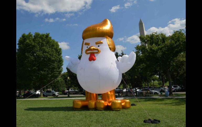 WASHINGTON, ESTADOS UNIDOS (10/AGO/2017).- Puede que el presidente de Estados Unidos, Donald Trump, esté de vacaciones fuera de Washington, pero un osado manifestante vigila la Casa Blanca.Una gallina inflable gigante, ataviada con el inconfundible peinado del comandante en jefe, captó la atención de turistas y cámaras de televisión en la capital el miércoles por la tarde.Twitter se llenó de inmediato de docenas de imágenes del globo con forma de ave, de aspecto airado y con un tupé dorado, que parecía mirar a la Casa Blanca desde un parque cercano conocido como Ellipse. La gallina llegó a aparecer incluso de fondo durante una entrevista en vivo en una de las televisoras más importantes del país.No es la primera vez que este mono se deja ver en Washington. La última vez fue en abril, antes de una protesta para presionar a Trump para que mostrase sus declaraciones fiscales. La gallina tiene incluso su propia cuanta de Twitter: @TaxMarchChicken.