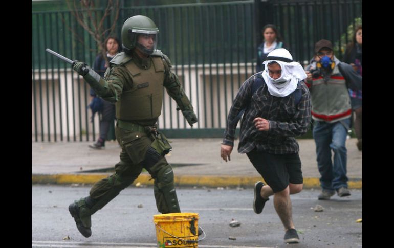 Internacional | Tras los graves disturbios ocurridos el jueves en manifestaciones de estudiantes Gobierno dice que ''se terminó'' la anarquía en Chile El Gobierno de Chile aseguró hoy que se terminó la anarquía en este país Por: EFE 8 de octubre de 2011 - 11:41 hs Un oficial de la policía antidisturbios intenta detener a un estudiante durante una manifestación. AFP / SANTIAGO DE CHILE, CHILE (08/OCT/2011).- El Gobierno de Chile aseguró hoy que "se terminó" la anarquía en este país, "que un encapuchado pueda deshacer en las calles", tras los graves disturbios ocurridos el jueves en manifestaciones de estudiantes en la capital chilena y en otras ciudades. "Se terminó aquello de que un encapuchado cree que puede hacer y deshacer, puede enfrentar, escupir y lanzar piedras o bombas molotov a un carabinero; que puede apedrear un local comercial, poner barricadas en cualquier momento o en cualquier calle o buscar incendiar autos", declaró el ministro portavoz Andrés Chadwick en el Palacio de la Moneda (sede del Ejecutivo). "Se terminó", enfatizó Chadwick quién deslizó una critica a los tribunales ya que de los cerca de 200 detenidos en la capital chilena, horas después todos fueron liberados, salvo un joven que quedó privado de libertad. Al respecto, sostuvo que "el Gobierno busca que se aplique la ley. Carabineros cumple y hace su trabajo, logrando o evitando que las personas que hacen actos vandálicos puedan desarrollar sus acciones, pero cuando llegamos a los Tribunales de Justicia se otorgan las libertades". No obstante, Chadwick aseveró que "este Gobierno respeta absolutamente a los Tribunales de Justicia, pero también pide que se pueda aplicar la ley en su correcta interpretación, en su objetivo de garantizar el orden público y la paz social El ministro portavoz dijo que el Gobierno va a cumplir su responsabilidad de mantener el orden público. "Que la ley se aplique, que no exista impunidad y que los tribunales tengan y dispongan de las herramientas legales", acotó. El ministro Chadwick dijo que "ahora comprenderán los que nos criticaban, por qué presentamos el domingo pasado un proyecto de ley" que endurece sanciones en el caso de desórdenes públicos. El nuevo articulado, anunciado el pasado domingo por el Presidente Sebastián Piñera, crea el delito de saqueo y castiga con cárcel las tomas de colegios. El proyecto tipifica como delito la "ocupación o invasión ilegal de inmuebles" y establece penas de hasta tres años de cárcel para los estudiantes que participen en tomas ilegales de colegios o universidades. El vocero de La Moneda reiteró su crítica a la Confederación de Estudiantes de Chile (Confech), donde se agrupan todas las universidades tradicionales, al señalar que está manejada por sectores "muy intransigentes, muy extremistas". Afirmó que en la reunión del pasado miércoles entre los estudiantes y el ministro de Educación, Felipe Bulnes, existían muchas posibilidades y espacios para empezar a construir acuerdos "pero al final prevaleció una actitud que revela que son los sectores más extremistas de la Confech los que están en la conducción". "La mesa (de diálogo) no pudo continuar y ellos mismos se retiraron, porque sólo aceptaban el todo de lo que estaban planteando. Dijeron todo o nada, o nos dan el cien por ciento de la gratuidad o entendemos que la mesa se terminó. Es una actitud de intransigencia", concluyó Chadwick. El pasado miércoles, los estudiantes, que llevan casi cinco meses movilizados en pro de una enseñanza gratuita y de calidad, rompieron el diálogo que mantenían con el Ejecutivo, al que acusaron de intransigente en el tema de la gratuidad. Temas América Latina Chile Manifestaciones en el mundo Lee También Mantendrán maiceros protesta en caseta de Ocotlán Protesta de trabajadores del SAT podría traer estas consecuencias para los contribuyentes Trabajadores del SAT se manifiestan en Jalisco SAT: Estas son las oficinas cerradas en CDMX por el paro de trabajadores Recibe las últimas noticias en tu e-mail Todo lo que necesitas saber para comenzar tu día Registrarse implica aceptar los Términos y Condiciones