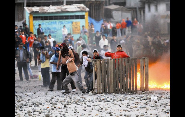 Internacional | Después de nueve días de manifestaciones, retornó la calma a la provincia de Andahuayla Gobierno firma acta que excluye minería en sudeste de Perú Una treintena de pobladores que exigían el cese de la actividad minera, resultaron heridos en un enfrentamiento con la policía Por: EL INFORMADOR 11 de noviembre de 2011 - 18:27 hs Campesinos se enfrentaron ayer con policías peruanos en la región de Andahuaylas. EFE / LIMA, PERÚ (11/NOV/2011).- El Gobierno peruano firmó una acta de compromiso para excluir la actividad minera en la provincia de Andahuaylas (sudeste) y retornó la calma en la zona, donde en la víspera hubo 30 heridos a raíz de un enfrentamiento entre policías y pobladores que exigían el cese de minería. "Tras la firma del acta retornó la calma al lugar y los pobladores comenzaron a regresar a sus distritos", informó a la prensa el alcalde de la provincia de Andahuaylas, Oscar Rojas Palomino. El alcalde señaló que el acta firmada por los ministros de Agricultura, Miguel Caillaux, y de Energía y Minas, Carlos Herrera, tranquiliza la zona que estuvo paralizada desde hace nueve días. "Con esta acta creo que se está avanzando bastante, porque es un documento donde se compromete a realizar los trámites ante el Consejo de Ministros con la finalidad de que excluya la actividad minera en Andahuaylas", señaló Rojas Palomino. La propuesta de los campesinos era que promulgara un decreto supremo que declare zona de exclusión minera a Andahuaylas y Chincheros, así como la nulidad de las concesiones mineras en un plazo de 15 días. En el acta se indica que en Andahuaylas y Chincheros "no hay ninguna concesión que tenga autorización para explorar u operar, lo que existe es minería informal" que el gobierno se compromete erradicar. Temas América Latina Manifestaciones en el mundo Perú Recibe las últimas noticias en tu e-mail Todo lo que necesitas saber para comenzar tu día Registrarse implica aceptar los Términos y Condiciones