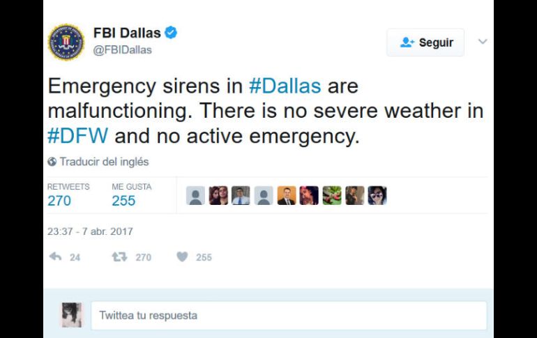 GUADALAJARA, JALISCO (09/ABR/2017).- Los vecinos de Dallas, Texas, Estados Unidos, pasaron uno de los sábados más molestos de sus vidas cuando al menos 150 alarmas vigiladas por la policía local se activaron al mismo tiempo, al parecer por culpa de un hacker que logró controlarlas en forma temporal.La pesada broma ocurrió a la medianoche del viernes y hasta las 01:20 horas los encargados de emergencias de la ciudad no lograron apagar todas las 156 alarmas, algunas de las cuales debieron ser reparadas en forma manual.Mientras tanto, más de cuatro mil personas llamaron para pedir información o preguntar si había una catástrofe en marcha; por el exceso de llamadas las líneas se saturaron y algunas personas cayeron en pánico. Vía Twitter, la oficina local del FBI publicó avisos para pedir calma.La vocera del departamento de información pública de Dallas, Sana Syed, dio una rueda de prensa para informar que la actividad de hackeo fue detectada dentro de la misma ciudad.