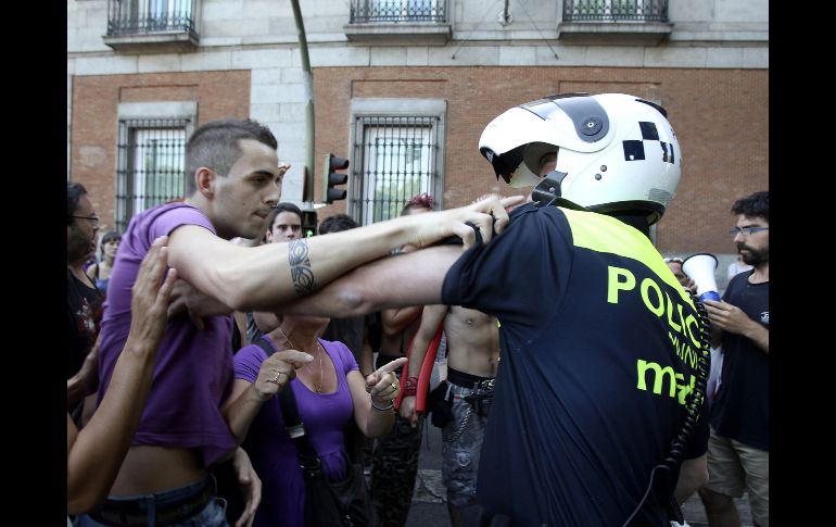 Internacional | Informaron la policía y los servicios de emergencias Heridos y detenidos en protesta de indignados en Madrid Tras los enfrentamientos de los ''indignados'' resultaron una veintena de heridos y cuatro detenidos Por: REUTERS 5 de agosto de 2011 - 07:19 hs Un ''indignado'' forcejea con un policía municipal en los aledaños de la Puerta del Sol. EFE / -''Indignados'' insisten en ocupar la Puerta del Sol MADRID, ESPAÑA (05/AGO/2011) - Centenares de "indignados" se enfrentaron en la noche del jueves con la policía frente al Ministerio del Interior en Madrid, dejando una veintena de heridos y cuatro detenidos, informaron la policía y los servicios de emergencias. Entre los detenidos -tres hombres y una mujer- está un periodista de la página web lainformacion.com que se encontraba haciendo su trabajo con la debida acreditación, dijo la dirección del sitio a Reuters. "Está incomunicado y creemos que le han golpeado en un ojo", dijo Jorge Martín, de lainformacion.com, sobre el trabajador de 25 años que previsiblemente iba a comparecer ante un juez a media mañana. Desde que la policía desmanteló el campamento que quedaba en la Puerta del Sol de Madrid el martes, el movimiento se reactivó con intentos de volver a tomar la simbólica plaza donde comenzó hace más de dos meses la protesta de personas descontentas con la política, la corrupción y la falta de empleo. Los "indignados" llevaban tres días extendiendo sus protestas por el centro de la capital y el jueves por la noche por primera vez la policía antidisturbios cargó contra los manifestantes frente a la sede del Ministerio del Interior por provocar desórdenes públicos, dijo una fuente policial. Cuatro de los 20 heridos, entre los cuales había siete policías, tuvieron que ser trasladados al hospital para practicarles suturas, dijeron los servicios de emergencias, sobre el incidente más grave registrado en Madrid desde el comienzo del llamado movimiento 15-M. La policía mantiene blindada la Puerta del Sol desde el martes para impedir que los manifestantes vuelvan a ocupar la plaza, con el consiguiente malestar entre comerciantes y el desconcierto de los turistas. "No se puede desalojar un lugar por la mañana y permitir que por la noche vuelva a repetirse esa situación que se pretendía evitar", dijo Dolores Carrión, delegada del Gobierno de Madrid, para justificar el bloqueo de la plaza, que ha criticado incluso el sindicato policial SUP. La delegada pidió comprensión a los comerciantes hasta que se restablezca la normalidad. Según medios, el Gobierno y la policía temen que las nuevas protestas de los indignados coincidan con la visita del Papa Benedicto XVI la tercera semana de agosto con motivo del Día Mundial de la Juventud, que atraerá a centenares de miles de personas a la capital. El movimiento que surgió en internet antes de las elecciones municipales y autonómicas del 22 de mayo se expandió por otras ciudades españoles y del extranjero. Actualmente mantiene vivo el espíritu de la protesta mediante asambleas barriales y distintos colectivos como "DemocraciaRealya", "Stop Desahucios" o "Toma los barrios". Temas Europa España Manifestaciones en el mundo Lee También SAT niega amenazas contra los trabajadores que se manifestaron Marchas CDMX: HOY, 15 de octubre, estas son las afectaciones viales Gentrificación de la Glorieta de los Desaparecidos Mantendrán maiceros protesta en caseta de Ocotlán Recibe las últimas noticias en tu e-mail Todo lo que necesitas saber para comenzar tu día Registrarse implica aceptar los Términos y Condiciones