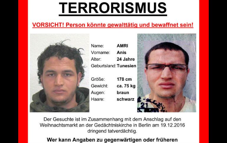 BERLÍN, ALEMANIA (22/DIC/2016).- El hermano de un tunecino fugitivo, principal sospechoso del incidente mortal en el mercado navideño de Berlín, instó a Anis Amri a entregarse a las fuerzas de seguridad alemana, cuando las autoridades de toda Europa buscan al atacante. Miembros de la familia de Amri, hablando desde su ciudad natal de Oueslatia en el centro de Túnez, están sorprendidos luego de conocer que Anis es el principal sospechoso del ataque con un camión en el centro de Berlín, que dejó 12 personas muertas. Amri, quien cumplió 24 años el jueves, salió de Túnez hace años para Europa, pero había estado en contacto regular con sus hermanos a través de Facebook y vía telefónica. El hermano dijo que Anis puede haberse radicalizado cuando estuvo en una prisión en Italia, donde se fue después de salir de Túnez a raíz de los levantamientos de la llamada primavera árabe. Esta declaración se produce cuando las autoridades alemanas se enfrentan a una creciente presión después de que se conoció que el tunecino había estado bajo vigilancia policial y había estado en contacto con un reclutador del Estado Islámico. Anis Amri estuvo bajo vigilancia policial durante varios meses hasta septiembre de este año debido a que se sospechaba que planeaba un robo en Berlín para financiar la compra de armas, dijo Karen Müller, portavoz del fiscal de Berlín. Las autoridades también sabían que Amri había interactuado con Abu Walaa, un hombre de 32 años de ascendencia iraquí arrestado en noviembre por cargos de reclutar y enviar combatientes de Alemania al grupo yihadista en Iraq y Siria. La evidencia clave en el caso de Walaa provino de un desertor del EI que había regresado a Alemania y acusó al yihadista de reclutarlo y organizar su viaje a Siria. En un comunicado, la fiscalía ofrece hasta 150 mil dólares por información que conduzca a la detención de Amri, al que caracteriza como violento y podría esta armado, mide un metro 78 centímetros, pelo negro y ojos castaños. Sin embargo, la filtración del nombre del sospechoso y la fotografía en la prensa pueden haber alterado los intentos de encontrarlo. En Duesseldorf, Ralf Jäeger, ministro del Interior del estado de Renania del Norte-Westfalia (RNW), dijo que el tunecino parecía haber llegado a Alemania en julio de 2015 y que su solicitud de asilo fue rechazada. Había vivido principalmente en Berlín desde febrero, pero estuvo recientemente en NRW, señaló Jäeger. Después de ser rechazado por asilo, debería haber sido deportado pero no podría ser devuelto a Túnez porque sus documentos estaban desaparecidos, sostuvo. Aunque las autoridades han tratado de acelerar la deportación de solicitantes de asilo rechazados este año, todavía hay un rezago en Alemania de decenas de miles, muchos de los cuales son capaces de resistir porque sus países de origen se niegan a llevarlos de regreso. Amri, comentó Jäger, fue uno de ellos. No había sido deportado porque -como muchos solicitantes de asilo en Alemania- no tenía pasaporte.