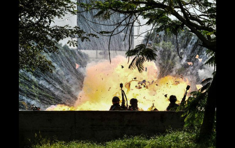 CARACAS, VENEZUELA (10/JUL/2017).- Siete miembros de la Guardia Nacional Bolivariana (GNB, policía militarizada) resultaron heridos hoy al ser alcanzados por un explosivo durante una protesta antigubernamental en Caracas, informó el Gobierno."Heridos siete GNB tras ataque explosivo en #TrancazoTerrorista hoy en Altamira", escribió en Twitter el ministro de Información venezolano, Ernesto Villegas, en referencia a la forma de protesta que consiste en el corte masivo de calles al tráfico.Un vídeo difundido por Villegas muestra cómo un artefacto explosivo estalla en medio de una columna de agentes motorizados que avanzaban por un sector el este de la capital venezolana.La explosión provocó una gran llamarada seguida de una nube de humo e hizo caer a algunos de los militares motorizados.En el momento de la explosión, decenas de jóvenes manifestantes se enfrentaban con piedras a los guardias nacionales que les impedían, lanzándoles perdigones de goma y gas lacrimógeno, cortar la autopista Francisco Fajardo, la principal vía rápida de Caracas.El Ministerio Público de Venezuela informó minutos en Twitter que investiga "la explosión" en Altamira.En una entrevista con la televisión estatal VTV, el comandante de la GNB Sergio Rivero Marcano afirmó que un grupo de periodistas y fotógrafos sabían de la presencia en la carretera del explosivo y no alertaron a los guardias."Acomodan todo para hacer la mejor toma al momento que realiza la explosión el artefacto explosivo e inmediatamente hay uno de los periodistas que comienza a narrar sobre el ataque", afirmó el comandante."Hay una composición de varios elementos pirotécnicos confinados en un solo artefacto. Obviamente la onda explosiva, la onda incendiaria es mayor", añadió el comandante sobre el material que explotó.Rivero Marcano condenó el "llamado" de las "hordas opositoras" a la violencia y manifestó el compromiso de la guardia en permanecer en las calles para garantizar el orden.Tanto Villegas como Rivero informaron también de otros dos guardias heridos, en este caso de bala, en La Tahona (en el este de Caracas) y San Antonio (a las afueras de la capital).La GNB es junto la estatal Policía Nacional Bolivariana (PNB) la encargada de controlar, dispersar o reprimir las protestas opositoras que se desarrollan desde hace más de tres meses Venezuela y que han dejado 91 fallecidos, según la Fiscalía.El presidente Nicolás Maduro y otros dirigentes oficialistas han elogiado la labor de la GNB durante las concentraciones de la oposición y han acusado a los dirigentes opositores de "terrorismo" por "instigar a la violencia" contra guardias e instalaciones militares.La Fiscalía cifra en 23 el número de muertos por la acción de policías y militares durante las marchas y citó como imputado al que fuera hasta el mes pasado jefe de la GNB, Antonio Benavides Torres, por supuestas violaciones de los derechos humanos.Hoy también se conoció que la Fiscalía de Venezuela adelanta 43 investigaciones penales contra funcionarios de la GNB por robar las pertenencias a ciudadanos que participan en las protestas