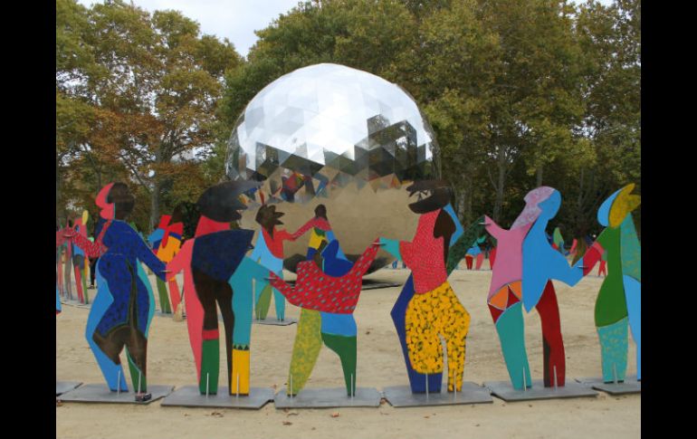 "Esta escultura describe la gran esperanza que todos hemos invertido en la ONU", afirmó el secretario general de la organización, Ban Ki-moon, en un acto realizado en el parque más importante de Nueva York para conmemorar la fecha.Hoy hace setenta años entró en vigor la Carta de las Naciones Unidas, su acta fundacional, que se firmó en San Francisco el 26 de junio de 1945.Aunque los actos más importantes para recordar el aniversario se realizaron en junio, con una celebración especial en San Francisco, la ONU ha vuelto a recordar hoy su cumpleaños tanto en Nueva York como en todo el mundo.La fecha comenzó a recordarse iluminando de azul, el color de la ONU, unos 250 monumentos de todo el planeta, desde el edificio de la Ópera de Sídney hasta el Empire State.Monumentos como la Gran Muralla china, la torre de Pisa, las pirámides de Guiza o La Alhambra de Granada se sumaron a esta iniciativa a lo largo del día.Y hoy, en Nueva York, donde está ubicada la sede central de la ONU, el homenaje se trasladó a Central Park, donde se reunieron las más altas autoridades de la organización para recordar también la fecha."Por siete décadas, la ONU ha servido como un faro de esperanza para los pueblos de todo el mundo", afirmó Ban en su discurso, teniendo a su espalda la instalación escultórica de Gabarrón.La obra consta de una esfera formada por 1.860 triángulos de espejos que mide 6.371 milímetros, para recordar el radio medio de la Tierra, de 6.371 kilómetros.A su alrededor hay setenta figuras de distintas formas y colores, una por cada año de la ONU, enlazadas de la mano para dar un sentimiento de hermandad.Esas manos unidas, anotó Ban en la inauguración de la obra, representa la necesidad de "crear un mundo más inclusivo", en el que se compartan valores y responsabilidades.Gabarrón, que vive entre Valladolid (España) y Nueva York, dijo que quiso representar un espacio con la gente unidas de las manos con el objetivo de "crear sociedades más fuertes".El arte puede ser una herramienta, añadió, para "abrir conciencias, respetar las diferentes razas y culturas y crear lazos más cercanos de entendimiento".Al acto asistieron, entre otros, el presidente de la Asamblea General de Naciones Unidas, el danés Mogens Lykketoft, y jefe de la misión española ante la ONU, Román Oyarzun, en representación del Consejo de Seguridad, órgano que este mes le toca presidir a España.Después del corte de la cinta para inaugurar la exposición, algunos de los asistentes se colocaron cerca de la esfera para, también, enlazarse de las manos y repetir el sentimiento que se quería reflejar con el acto de hoy.La instalación, que estará en Central Park hasta el 15 de noviembre, tiene previsto viajar después de Nueva York a varias ciudades de todo el mundo, incluida París, coincidiendo con la cumbre del clima que habrá a fin de año.Ya desde horas antes, Ban Ki-moon difundió un mensaje en el que defendió la labor de Naciones Unidas al recordarse este 70 aniversario con la iluminación en azul de los dos centenares de edificios.Si cada bandera nacional defiende el patriotismo de cada país, afirmó el secretario general de la ONU, la bandera azul de la ONU "es la única que nos pertenece a todos nosotros".