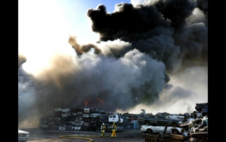 Internacional | Podía observarse a kilómetros a la redonda antes de que el fuego fuera controlado Incendio en depósito de autos cubre Los Ángeles de humo Podía observarse a kilómetros a la redonda antes de que el fuego fuera controlado Por: AP 18 de abril de 2016 - 16:20 hs Libera humo negro durante dos horas antes de que los bomberos lograran apagarlo. AP / R. Vogel CALIFORNIA, ESTADOS UNIDOS (18/ABR/2016).- Un incendio en un depósito de desecho de autos en San Fernando Valley provocó una gruesa y negra cortina de humo que cubrió Los Angeles y que podía observarse a kilómetros a la redonda antes de que el fuego fuera controlado. El incendio en el depósito Self Service Auto Recycler en Sun Valley envolvió en llamas a decenas de vehículos que estaban amontonados. El Departamento de Bomberos catalogó el incidente de emergencia grave, pero no se reportaron lesionados y ninguna construcción se vio amenazada. El incendio inició poco después de las 4 de la tarde del domingo y liberó un humo negro durante dos horas antes de que 150 bomberos lograran apagarlo. Los bomberos indicaron que algunos apagafuegos permanecerán en el lugar para asegurarse que no se aviven las llamas. Aún no se da a conocer la causa del siniestro. Temas Norte América Incendios Estados Unidos California Recibe las últimas noticias en tu e-mail Todo lo que necesitas saber para comenzar tu día Registrarse implica aceptar los Términos y Condiciones
