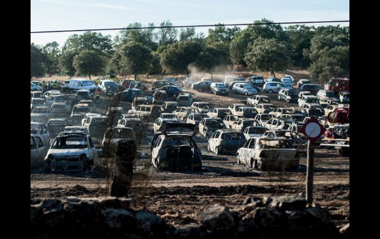LISBOA, PORTUGAL (04/AGO/2016).- El estacionamiento de un festival de música y danza al aire libre en Portugal parecía un cementerio de autos tras un incendio que calcinó 422 coches.La policía inspeccionaba el jueves las largas filas de autos carbonizados e investigadores de aseguradoras evaluaban los daños.Las autoridades dijeron que el incendio ocurrido el miércoles no causó víctimas, aunque obligó a la evacuación de unas cuatro mil personas del recinto donde se celebraba el festival, en el este de Portugal.El médico Pedro Mestre dijo a la televisora TVI que los autos explotaron uno tras otro "como maíz reventado” mientras el fuego se extendía con rapidez por el estacionamiento.