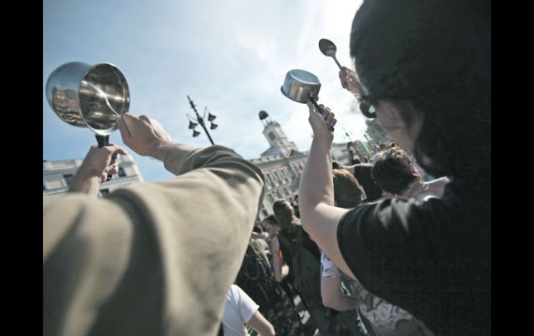 Internacional | Personas de todas las edades salen a las calles ''Indignados'' celebran con ''cacerolada'' primer aniversario Personas de todas las edades salen a las calles para protestar contra la crisis recurrente y la falta de empleo Por: EL INFORMADOR 16 de mayo de 2012 - 00:54 hs En la imagen, miles de “indignados” golpean cacerolas con cucharas en la Puerta del Sol, en Madrid. REUTERS / MADRID, ESPAÑA (16/MAY/2012).- Fecha inolvidable. El movimiento de protesta social de los “indignados” culminó ayer la celebración de su primer aniversario con movilizaciones en varias ciudades de España en el último de cuatro días de manifestaciones y asambleas populares para denunciar la crisis y la corrupción. Cientos de personas participaron por la tarde en una masiva “cacerolada” en la Puerta del Sol de Madrid, donde el ruido de todo tipo de cacharros reemplazó al “grito mudo” con el que los “indignados” habían inaugurado el sábado las movilizaciones para conmerorar su primer año. Esta ruidosa protesta dio paso a la cuarta y última gran asamblea popular en esta céntrica plaza madrileña, donde el 15 de mayo del año pasado había surgido el campamento de carpas y sacos de dormir que se convirtió durante un mes en el símbolo del hartazgo popular por la crisis. El movimiento “va avanzando, se ha movido durante un año, aunque mucha gente creía que se iba a terminar”, afirma Gastón Tagtachian, de 31 años, estudiante de fotografía argentino afincado en España. Desde que el sábado comenzaron los “indignados”, con marchas en varias ciudades que sacaron a la calle a unas 30 mil personas en Madrid y 45 mil en Barcelona, las autoridades de la capital sólo autorizaron las concentraciones hasta las 22:00 horas. Tres noches consecutivas, la Policía intervino de madrugada para desalojar a los grupos de manifestantes que pretendían mantener una “asamblea permanente” en la Puerta del Sol, con un saldo total de 28 detenidos que poco a poco iban siendo puestos en libertad. También los activistas que acampaban en la barcelonesa Plaza de Cataluña, donde el sábado instalaron un “ágora” de debate ciudadano en una ocupación tolerada por las autoridades locales, debían levantar ayer el campamento. En Barcelona, esta última jornada se dedicó a protestar ante oficinas y sedes de bancos, acusados por los de manifestantes ser principal “culpable y beneficiaria de la crisis”. “Llevamos cuatro años de crisis, cuatro años de estafa, en los que (...) asistimos a un desmantelamiento de la sanidad y la educación pública, un trasvase de dinero público hacia entidades financieras privadas, un empobrecimiento de la población”, fustigó en un comunicado la Plataforma de Afectados por la Hipoteca (PAH). “Esto no es crisis, esto es una estafa” fue uno de los gritos más escuchados en la concentración barcelonesa, mayoritariamente de jóvenes pero en la que también hubo representes de la tercera edad. Símbolo más visible de la crisis, desde el estallido de la burbuja inmobiliaria española en 2008, unas 300 mil familias —españolas e inmigrantes— fueron desahuciadas de sus hogares por impago en un país donde el desempleo afecta ya a 24.44% de la población activa. Pese a la confiscación de la vivienda, estas personas mantienen las deudas con sus bancos, una práctica contra la cual luchan los “indignados” y sobre la que el Gobierno aprobó un “código de buenas prácticas”, voluntario para los bancos, que protege a los más desfavorecidos. FRASE"Estamos junto a los jóvenes que luchan por aquellos derechos por los que peleamos contra el franquismo y luego conseguimos y ellos pueden perder "Tomás Romero, taxista jubilado de 66 años suma su voz al movimiento. Temas Europa España Manifestaciones en el mundo Lee También Sociales: El Informador inicia una nueva etapa con la moderna imprenta "Doña Stella" España consigue su boleto a los cuartos de final del Mundial Sub-20 Derrumbe de edificio en Madrid deja cuatro desaparecidos y tres heridos Lo peor es que Claudia también tiene sus dudas Recibe las últimas noticias en tu e-mail Todo lo que necesitas saber para comenzar tu día Registrarse implica aceptar los Términos y Condiciones