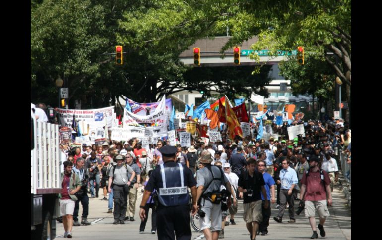 Internacional | Proclamaron el mensaje 'indocumentados y sin miedo' Indocumentados marchan en vísperas de la Convención Demócrata Proclamaron por las calles del centro de Charlotte el mensaje 'indocumentados y sin miedo' Por: EFE 2 de septiembre de 2012 - 20:55 hs Cientos de manifestantes, incluidos varios grupos de inmigrantes en el centro de Charlotte. EFE / CHARLOTTE, ESTADOS UNIDOS (02/SEP/2012).- Cientos de manifestantes, incluidos varios grupos de inmigrantes, marcharon hoy por las calles del centro de Charlotte (Carolina del Norte) llevando su mensaje de "indocumentados y sin miedo" a la Convención Nacional Demócrata. La coalición "Marchemos contra Wall Street del Sur", conformada por 90 organizaciones de todo el país, protestó contra los bancos, la corrupción, las guerras, la contaminación del medio ambiente, y el desempleo, y a favor de los homosexuales, por la libertad de los presos políticos, la tolerancia, y la legalización de los "sin papeles". Reunidos primero en un parque al norte de la ciudad, los participantes prepararon sus pancartas, consignas, banderas e inclusive instrumentos musicales, para realizar el recorrido de tres millas, que incluyó la sede del Bank of America, Duke Energy, la compañía de electricidad más grande de Estados Unidos, y el Centro de Convenciones. Los organizadores enfatizaron que siendo Charlotte el segundo centro financiero y de acumulación del capital de la nación, había que rechazar las políticas de los que catalogaron "banqueros corruptos", quienes han recibido "700 mil millones en paquetes de rescate económico". El tema migratorio cobró importancia en la agenda de las exigencias, ya que los proinmigrantes manifestaron su descontento con la Administración Obama por los altos índices de inmigrantes deportados desde que asumió la Presidencia en 2004. Entre los grupos nacionales latinos que llegaron a Charlotte se encontraban el Sindicato Agrícola (FLOC), con sede en Ohio, la Red Nacional de Jornaleros de Los Ángeles (California), la Alianza Latina por los Derechos Humanos de Georgia (Atlanta), y los viajeros del "undocubus", que recorrieron 10 estados y 15 ciudades. Para Julio Salgado, de California, no fue suficiente que el presidente otorgara la acción diferida al grupo de jóvenes, sino que exigió una salida para los millones de indocumentados. "Nuestros papás son las personas más importantes en nuestras vidas y no podemos dejar que las criminalicen", enfatizó Salgado. Por su parte, Pablo Alvarado, de Los Ángeles, llegó a Charlotte para traer la música de los jornaleros de esa ciudad a los participantes del "undocubus", y a denunciar la "cobardía" del Gobierno de "perseguir a las madres por falta de licencia". "Cuando se persigue a los más vulnerables, humildes, y no sólo a los inmigrantes, sino a todos. Los inmigrantes no son los culpables de la crisis económica, esos están en Wall Street, a esos no los meten presos, a esos les dan dinero, y a nosotros nos deportan", apuntó Alvarado. El Departamento de Policía de Charlotte- Mecklenburg (CMPD) activó un dispositivo de seguridad, que incluyó la presencia de cientos de agentes de diferentes partes del estado y de Colorado, Filadelfia, Illinois Georgia, y Washington DC, que estuvieron acompañando a los más de 800 manifestantes en su recorrido. El portavoz policial, Robet Tufano, confirmó que hubo un arresto de una mujer por llevar una pañoleta que cubría su rostro, lo que violó las disposiciones de seguridad de la ciudad y al ser detenida portaba un cuchillo. Otro individuo, que no pertenecía a la manifestación y era espectador, fue arrestado por intoxicación. El jefe de la policía de Charlotte, Rodney Monroe, afirmó a los periodistas que la marcha "se había llevado a cabo sin mayores contratiempos". Los manifestantes culparon a los Demócratas y Republicanos por "promover programas de austeridad, mientras hacen tratos que benefician a las instituciones financieras y las corporaciones. "Ahora más que nunca necesitamos un movimiento amplio y poderoso que tenga la capacidad de retar las agencias proguerra y pro Wall Street de ambos partidos. La semilla de este movimiento retoña a nuestro alrededor", enfatizó el grupo en un comunicado. Temas Norte América Estados Unidos Manifestaciones en el mundo Inmigrantes Lee También "Chucky" Lozano reconoce que jugaría en Chivas o en América SALDO de daños en TODO el país por tormenta "Raymond" CDMX, con pronóstico de lluvias fuertes hoy sábado Difícil cierre para el peso; rompe el techo de las 19 unidades por dólar Recibe las últimas noticias en tu e-mail Todo lo que necesitas saber para comenzar tu día Registrarse implica aceptar los Términos y Condiciones