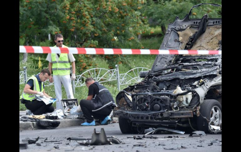 KIEV, UCRANIA (27/JUN/2017).- La Policía investiga como "acto terrorista" la explosión hoy de un automóvil en Kiev que le costó la vida a su conductor, miembro de las Fuerzas Armadas ucranianas, informó el Ministerio del Interior de Ucrania."Por cuanto era un militar en activo, la Fiscalía determinará el procedimiento de la investigación del caso, abierto de conformidad con el artículo 258 del Código Penal como 'acto terrorista' por la policía de Kiev", dijo a la prensa el portavoz de Interior, Artiom Shevchenko.Agregó que el militar tenía 39 años, pero no reveló ni su identidad ni su grado.Según el parte policial, el aviso de la explosión se recibió a las 08:16 hora local (05:16 GMT), e inmediatamente fueron enviados equipos de criminalistas y forenses al lugar del suceso.El automóvil, un Mercedes Benz, estalló cuando circulaba en la intersección de las calles Solomianska y Oleksiivska, en el este de Kiev.El vehículo quedó completamente destruido y unos de sus fragmentos, que fueron hallados en un radio de más de cien metros, hirieron a una viandante.Según la portavoz de la Policía, Oksana Blischik, se trata de una mujer de 27 años que resultó herida en las piernas.
